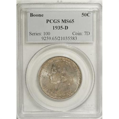 <B>1935 Boone PDS Set MS65 NGC and PCGS.</B></I> The set includes: <B>1935 MS65 NGC</B></I>, luminous beneath dusky mustard-gold patina; <B>1935-D MS65 PCGS</B></I>, strongly lustrous and slightly hazy with dashes of charcoal color on the obverse and a patch of purplish patina at the lower reverse; and a <B>1935-S MS65 NGC</B></I>, lightly gold-toned overall with a milky appearance.<BR><I>From The Silver Fox Collection.</B></I><BR><BR><b>Shipping:</b> Coins & Currency (<a target="_blank" href="http://www.heritageauctions.com/common/shipping.php">view shipping information</a>)