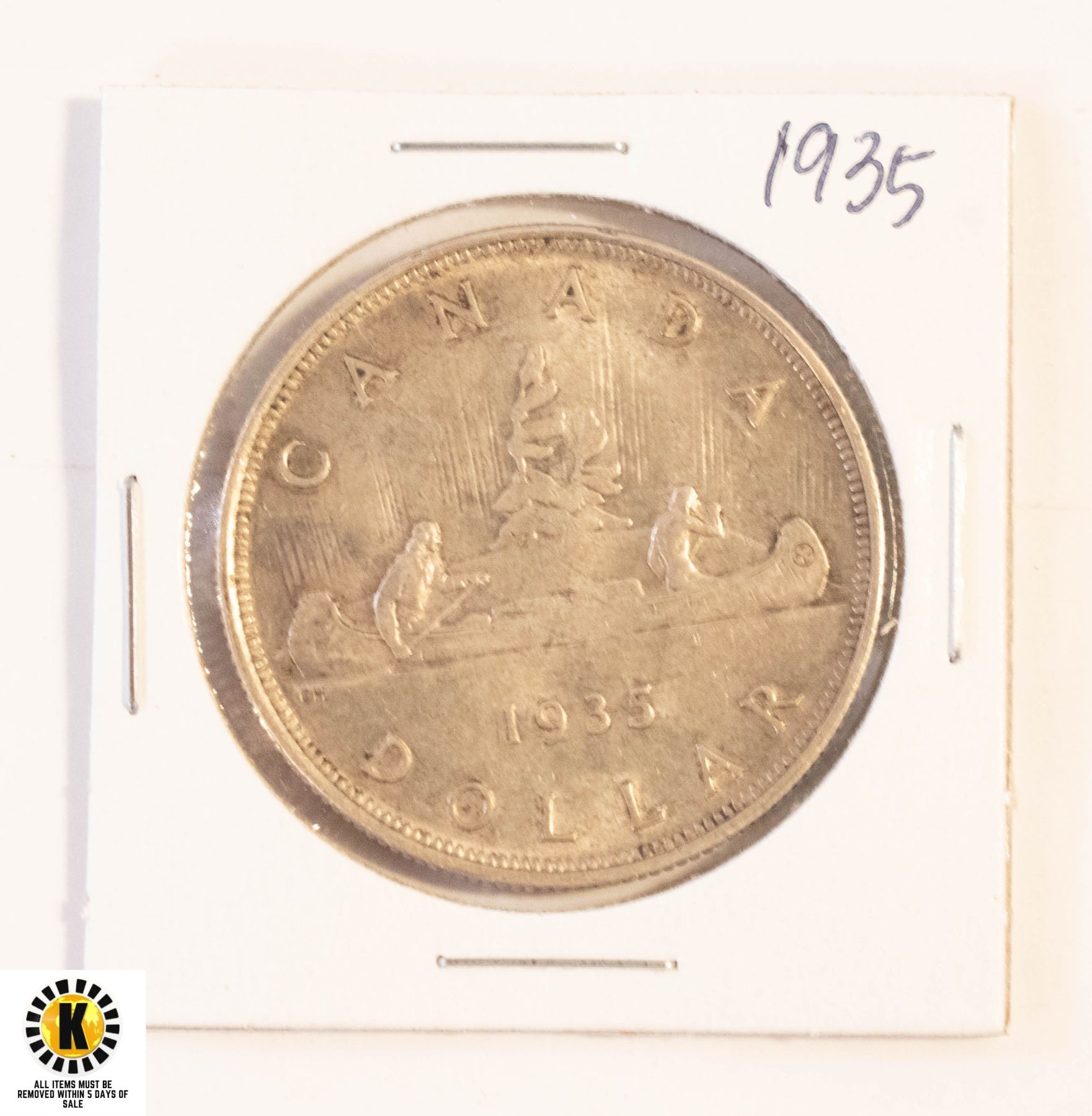 1935 SILVER CANADA $1 DOLLAR COIN, EXTRA FINE