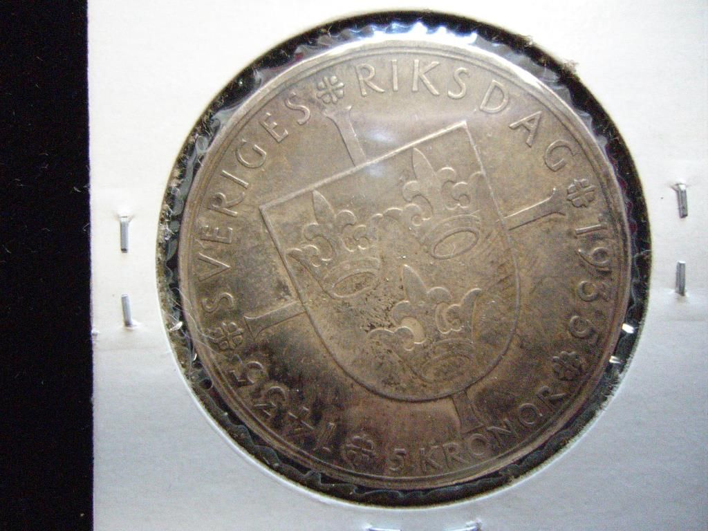 1935 SWEDEN SILVER 5 KRONER .7234 OZ. ASW