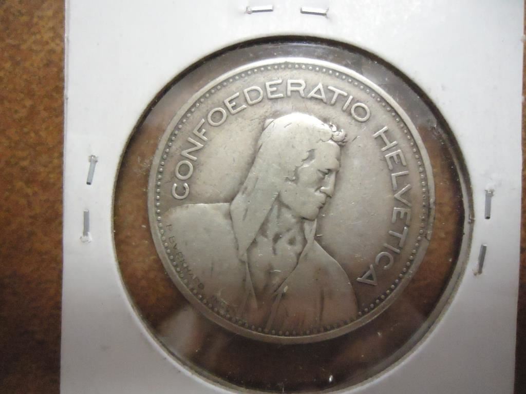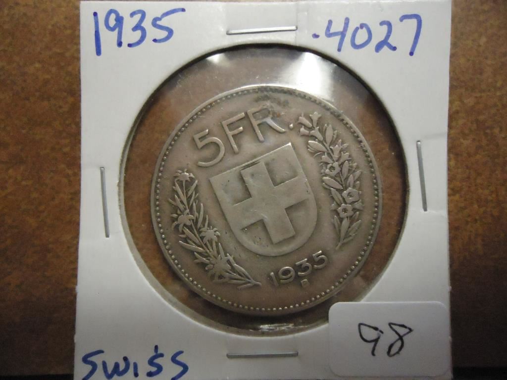 1935 SWITZERLAND SILVER 5 FRANCS .4027 OZ. ASW