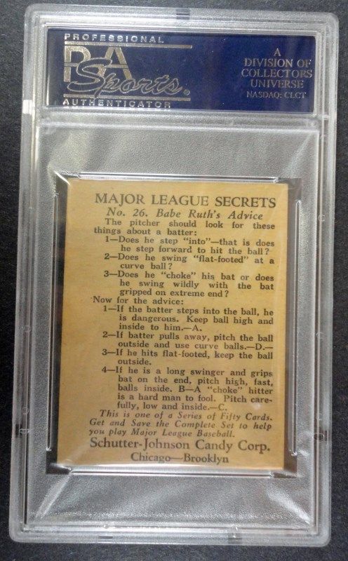 1935 Schutter Johnson Candy #26 Babe Ruth PSA EX5 (MC) Yankees EST $2200-$2500