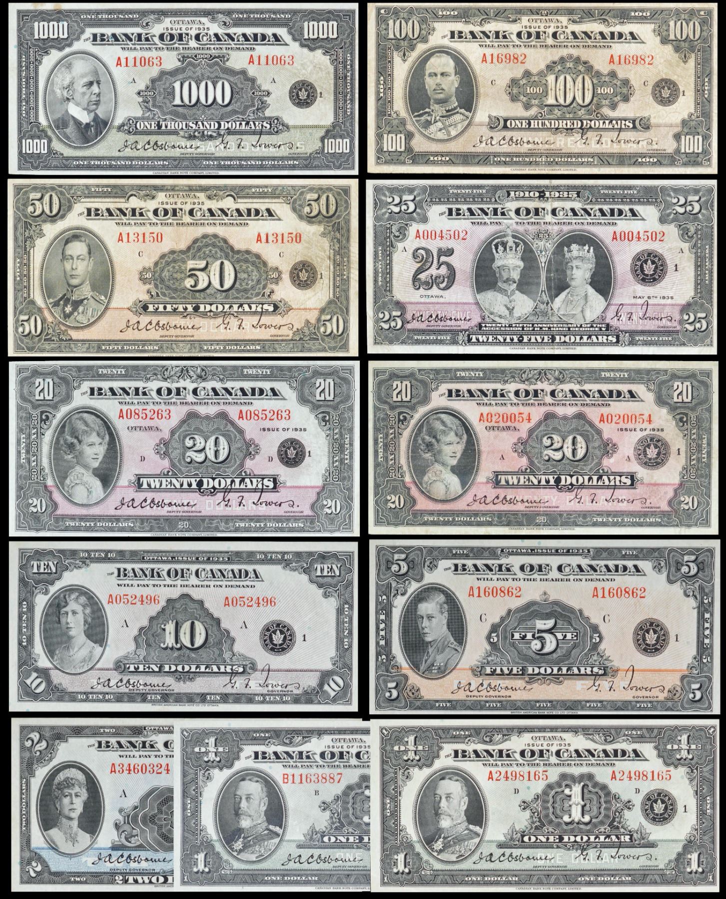 1935 Set - $1-$1000 "English text" Includes $1 Letter A & B, $2, $5, $10, $20 Small & Large Seals.
