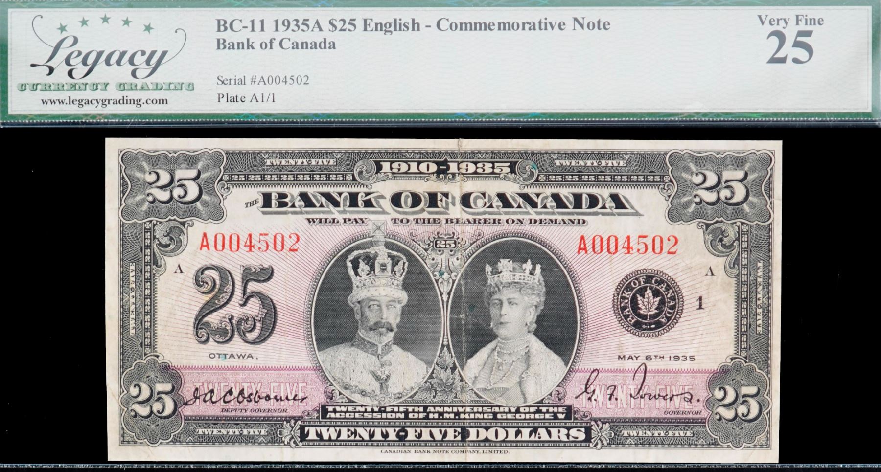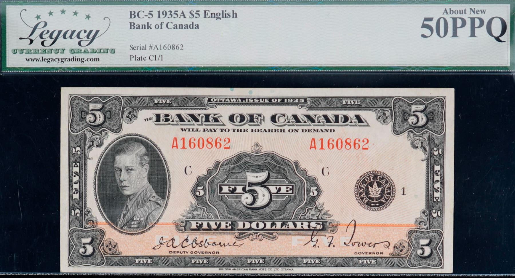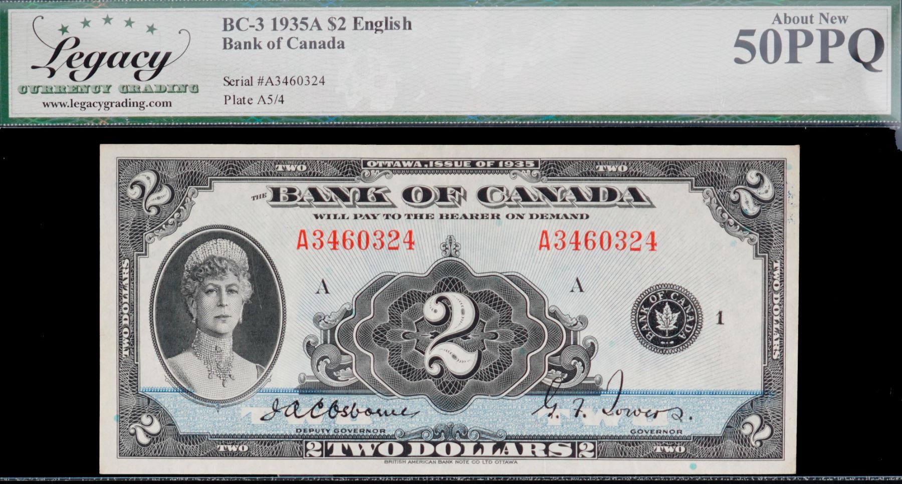 The cataloguer has taken every reasonable measure to ensure that all of the lots in this sale are as described and genuine. All raw coins and banknotes have been graded by the cataloger or the auction house which represent our best professional opinion. To grade coins and banknotes, we use Canadian grading standards, 42 years of experience and good conscience. However, grading is a subjective description in the opinion of the cataloger or the auction house. Among experts there are often differences of opinion on the grading and the eye appeal of a coin. The strike and the state of preservation are often debated. The Canadian Numismatic Company acts as an agent between consignors and buyers. The Canadian Numismatic Company does not guarantee that any coin or banknote cataloged will meet the standards, or the grade, of any third party grading companies. No warranty, whether impressed or implied. Items are as is, no warranty given. We cannot accept responsibility and waive all liability resulting in financial losses, and or incidentals accruing from the sale of any items, nor can we guarantee that items graded by third party services will grade the same if submitted to a different grading service or re-submitted to the same company. Statements by The Canadian Numismatic Company regarding the condition, the eye appeal, the strike and the population of items are for guidance only. All lots offered are sold "AS IS". Title to all lots remains with the auction house until paid for in full by the purchaser. But they are held at the risk of the purchaser once the time of the sale.