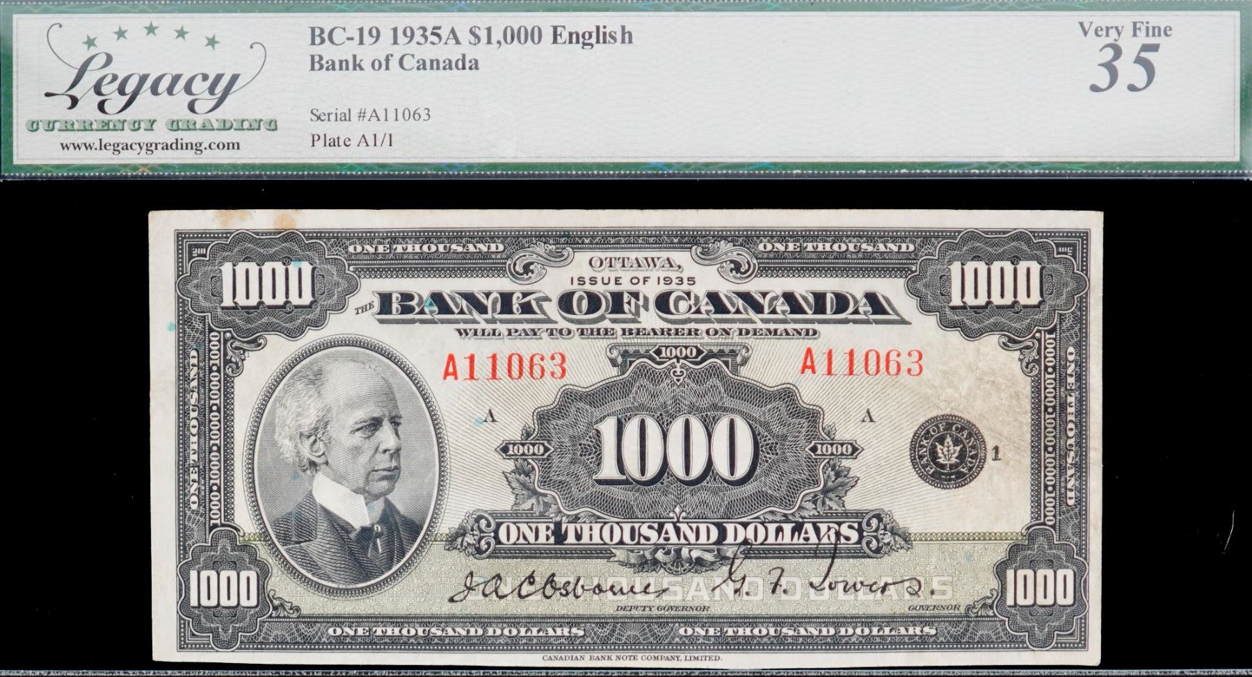 1935 Set - $1-$1000 "English text" Includes $1 Letter A & B, $2, $5, $10, $20 Small & Large Seals. $25, $50, $100 & $1000. A superb 11 Note set graded by PMG & Legacy Very Fine-20 to AU58. A rare opportunity to acquire a full set!