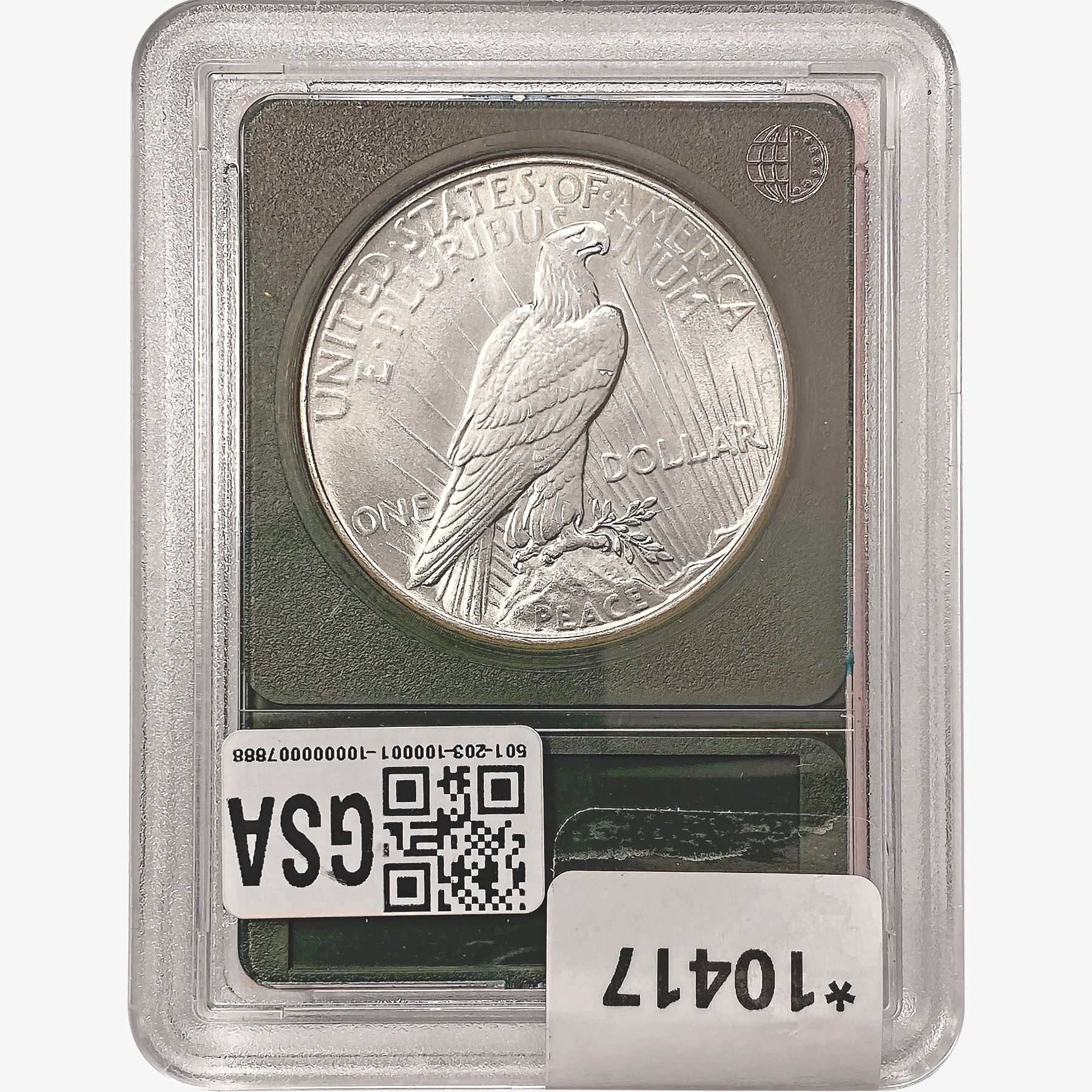 l. All non-certified coins and currency are guaranteed genuine, but are not guaranteed as to grade, since grading is a matter of opinion, an art and not a science, and therefore the description rendered by GSA or any third-party grading service may not agree with the opinion of others (including trained experts), and the same expert may not grade the same item with the same grade at two different times. GSA may, but is not obligated to, express an opinion as to non-certified numismatic items, in GSA’s opinion, or by its employees’ experience and the current interpretation of the American Numismatic Association’s standards as of the date the catalog was prepared. There is no guarantee or warranty expressed or implied that the grading opinions utilized by GSA, if any, will meet the standards of any grading service at any time in the future.