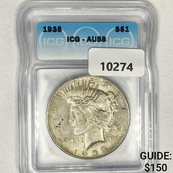 1935 Silver Peace Dollar ICG-AU58