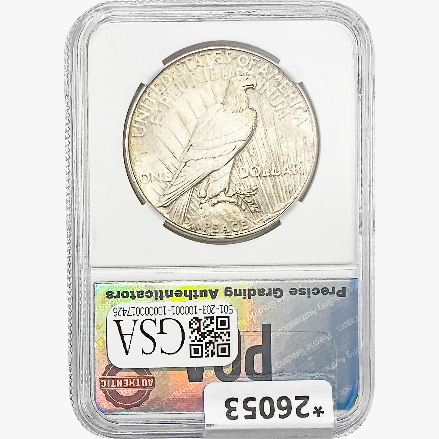 l. All non-certified coins and currency are guaranteed genuine, but are not guaranteed as to grade, since grading is a matter of opinion, an art and not a science, and therefore the description rendered by GSA or any third-party grading service may not agree with the opinion of others (including trained experts), and the same expert may not grade the same item with the same grade at two different times. GSA may, but is not obligated to, express an opinion as to non-certified numismatic items, in GSA’s opinion, or by its employees’ experience and the current interpretation of the American Numismatic Association’s standards as of the date the catalog was prepared. There is no guarantee or warranty expressed or implied that the grading opinions utilized by GSA, if any, will meet the standards of any grading service at any time in the future.