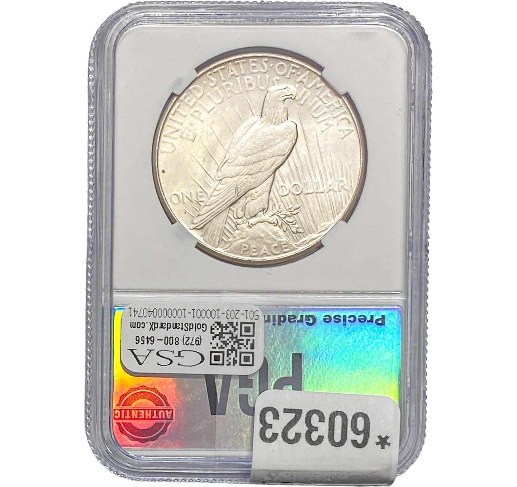 l. All non-certified coins and currency are guaranteed genuine, but are not guaranteed as to grade, since grading is a matter of opinion, an art and not a science, and therefore the description rendered by GSA or any third-party grading service may not agree with the opinion of others (including trained experts), and the same expert may not grade the same item with the same grade at two different times. GSA may, but is not obligated to, express an opinion as to non-certified numismatic items, in GSA’s opinion, or by its employees’ experience and the current interpretation of the American Numismatic Association’s standards as of the date the catalog was prepared. There is no guarantee or warranty expressed or implied that the grading opinions utilized by GSA, if any, will meet the standards of any grading service at any time in the future.