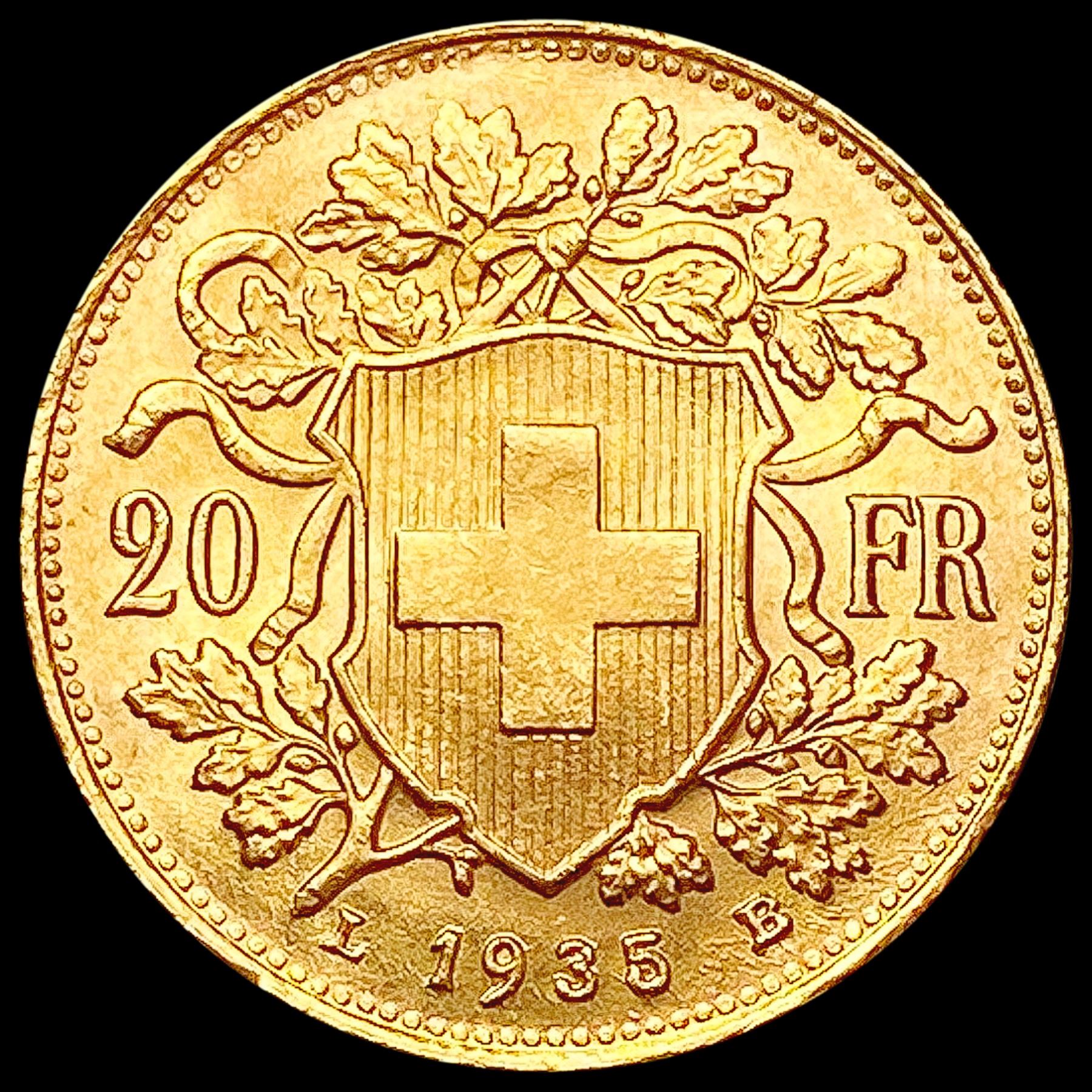 1935 Swiss Gold 20 Francs 0.1867oz UNCIRCULATED