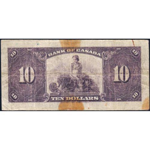 1935 Ten Dollars, English, BC-7 Serial Number A030586 C, PMG Very Good 10 Net Stained, Tear