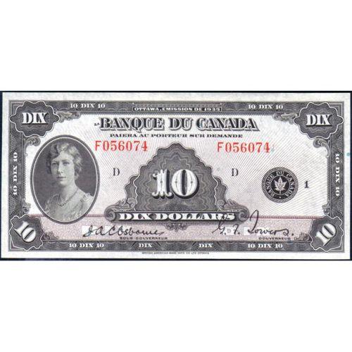 1935 Ten Dollars French, BC-8 Serial Number F056074 D, AU-Uncirculated. Very well centered