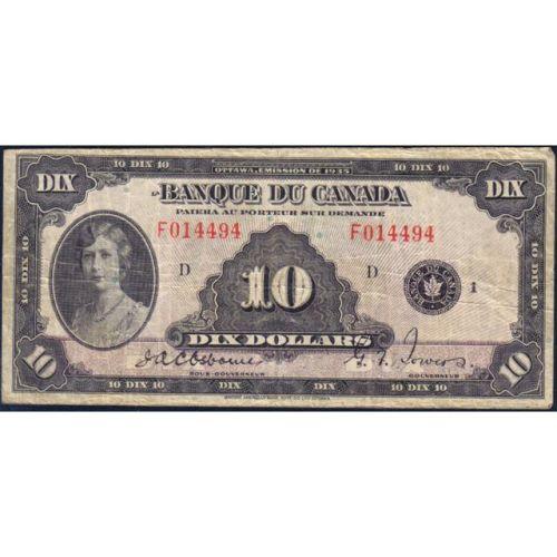 1935 Ten Dollars, French, BC-8 Serial Number F014494 D, PMG Fine 12 Net PVC