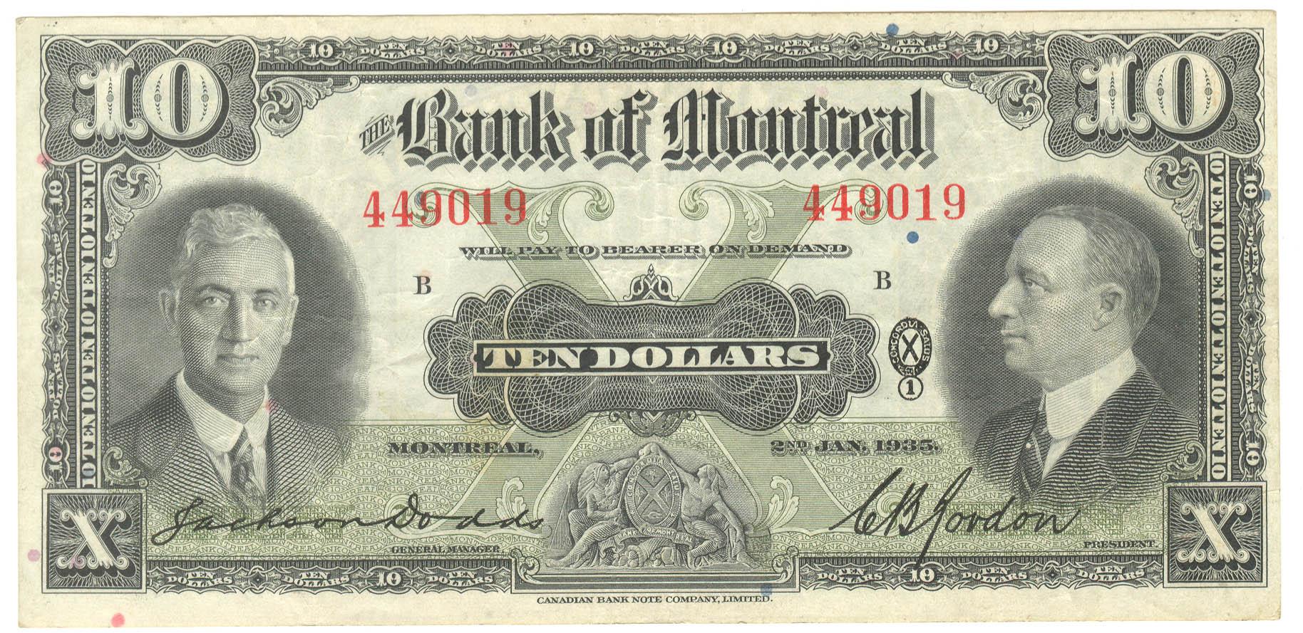 1935 Ten Dollars The Bank of Montreal, Very-Fine, 505-60-04, Dodds Gordon, serial 449019, Letter B.