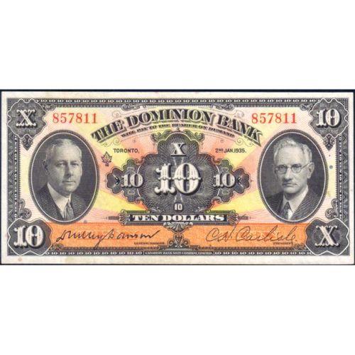 1935 Ten Dollars The Dominion Bank, CH 220-26-04 Serial Number 857811. Very well centered, PMG Gem Uncirculated 65 Exceptional Paper Quality