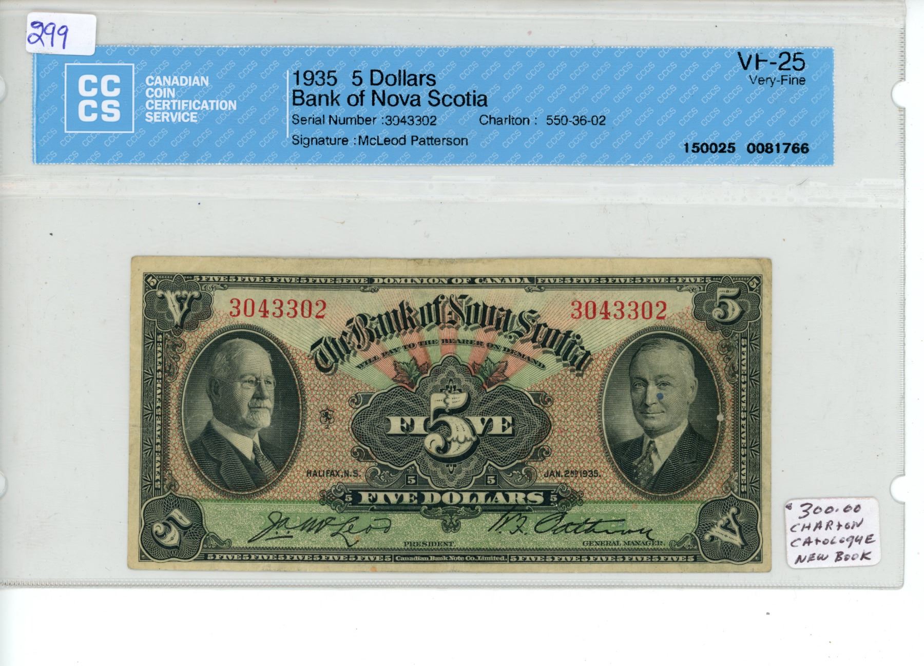 1935 The Bank of Nova Scotia 5 Dollar Bill - VF-25