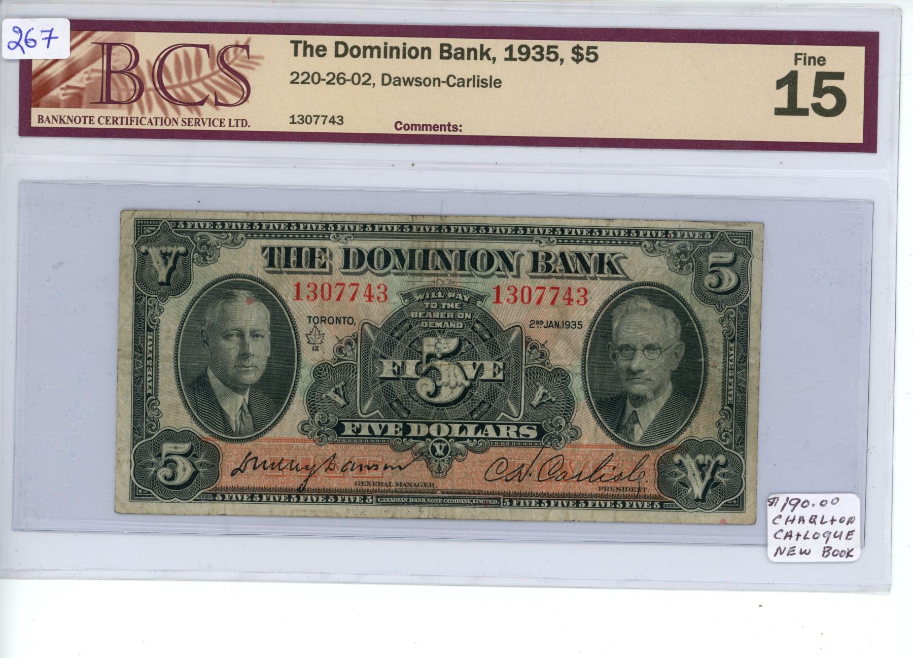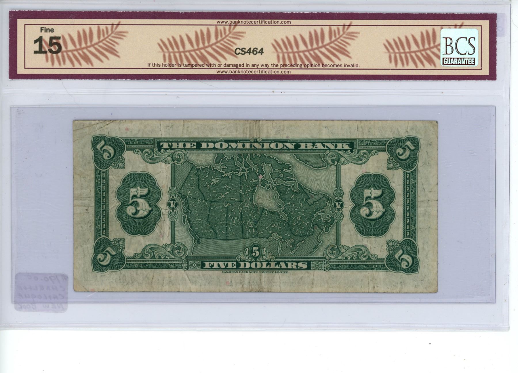 1935 The Dominion Bank 5 Dollar Bill - F-15