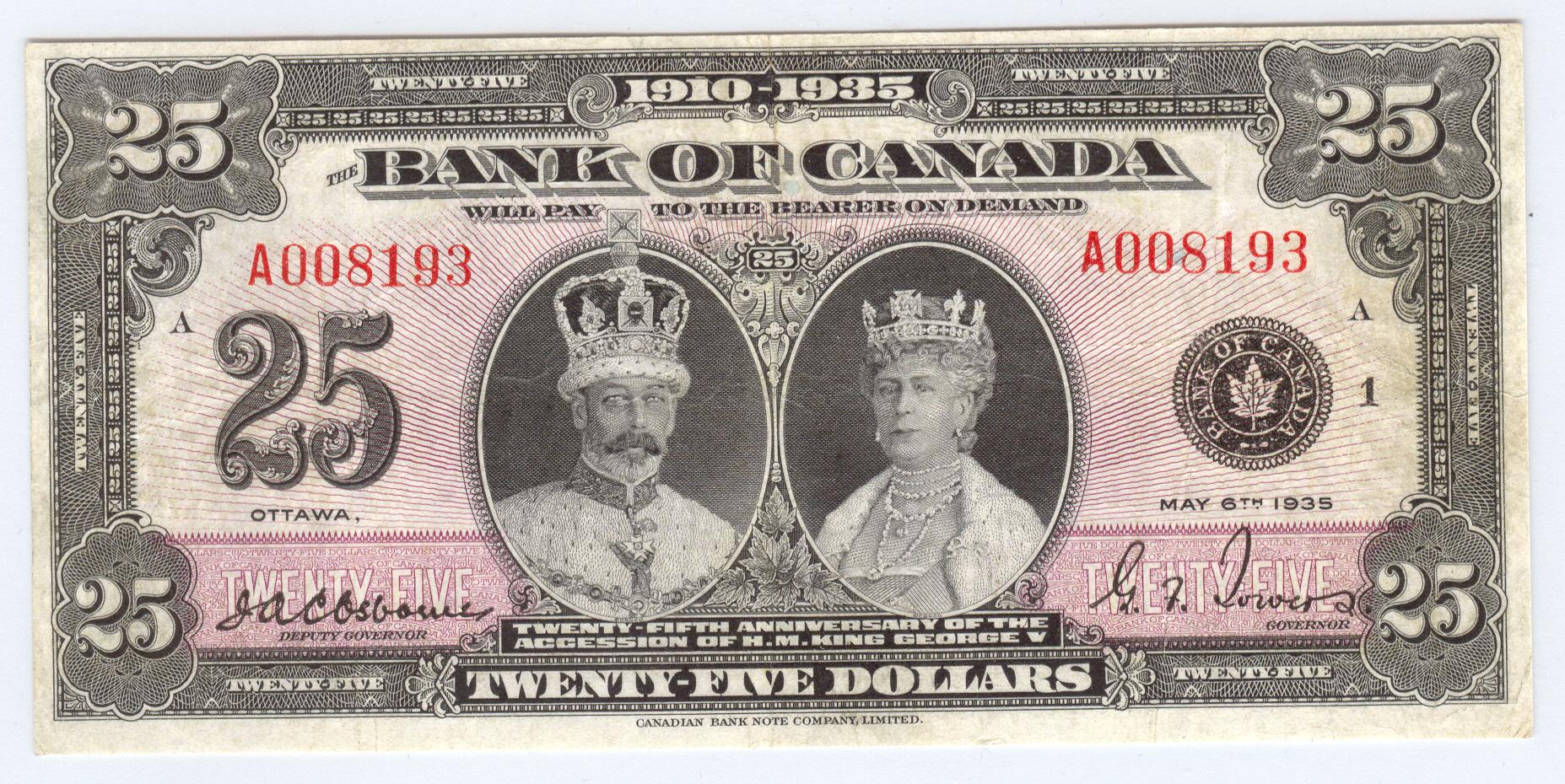 1935 Twenty Five Dollars English, BC-11, PMG VF-25, Osborne Towers, Letter A, serial A008193.
