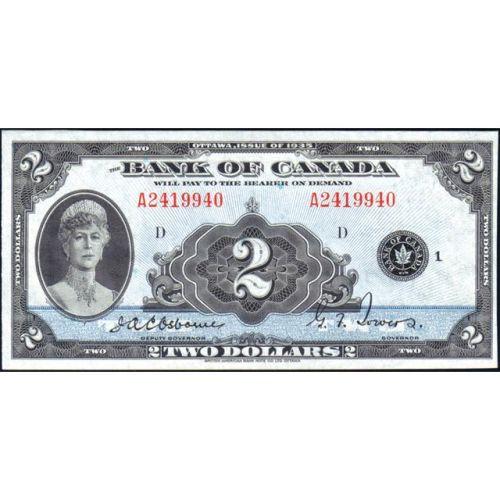 1935 Two Dollars English, BC-3, Serial Number A2419940 D, AU. A bit off centre to the right