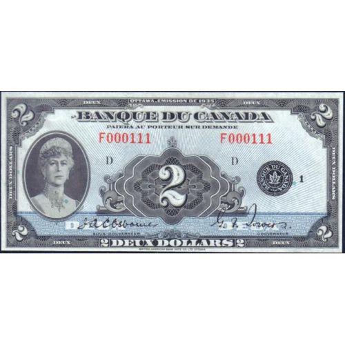 1935 Two Dollars French, BC-4 Serial Number F000111 D, PMG Gem Uncirculated 65 Exceptional Paper Quality
