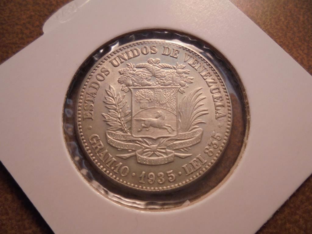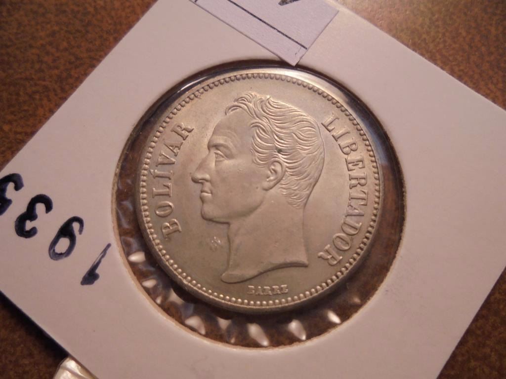 1935 VENEZUELA SILVER 2 BOLIVARS UNC