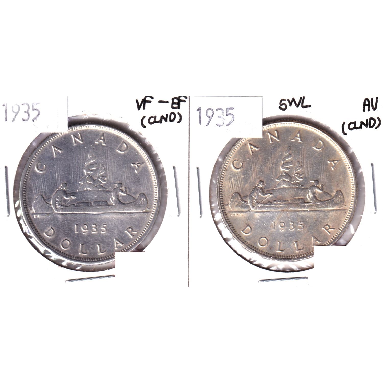 1935 VF-EF & 1935 SWL AU Silver Dollar (cleaned). 2pcs