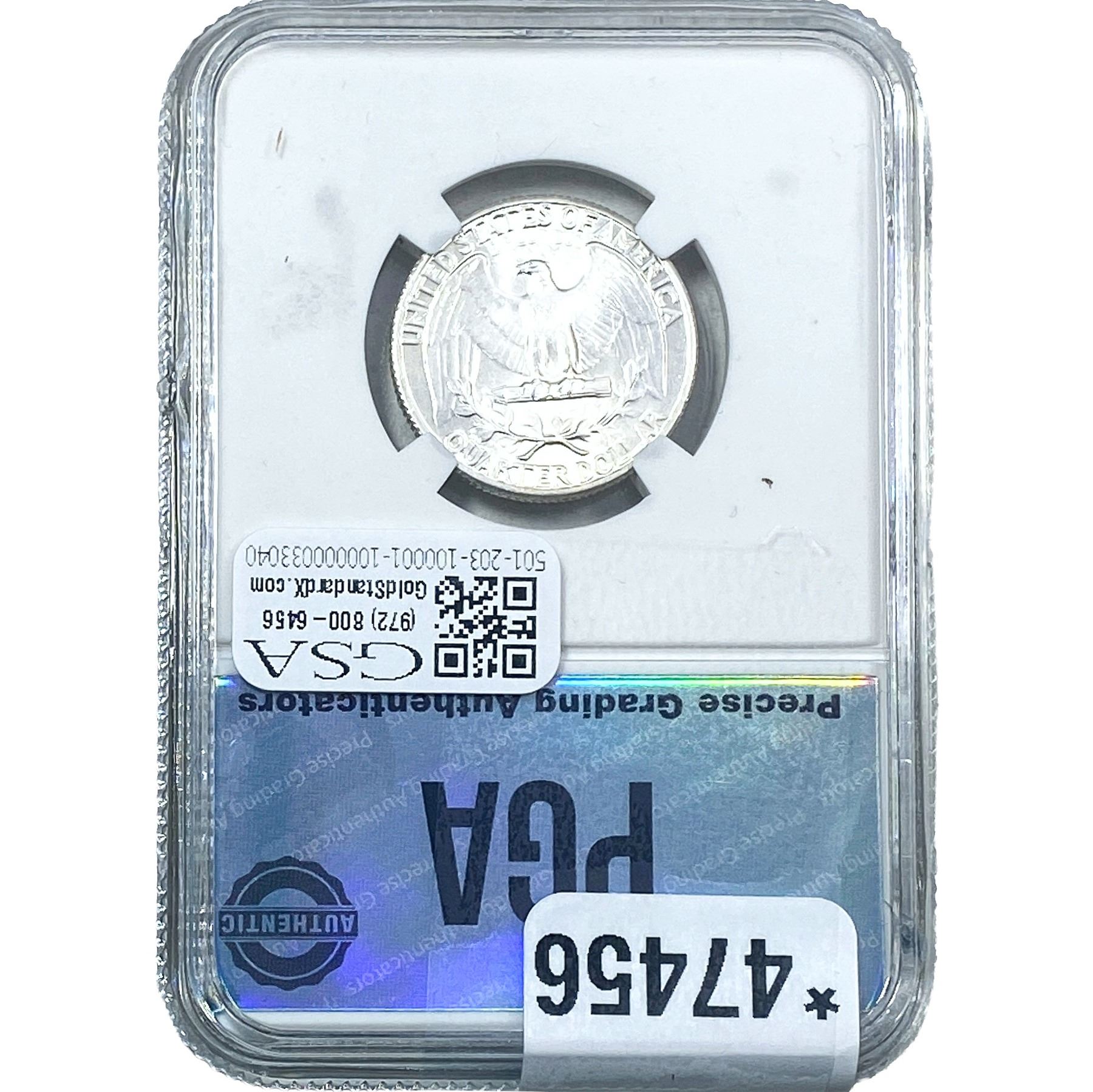 COINS AND CURRENCY LISTED IN GSA’S CATALOG AS GRADED AND ENCAPSULATED BY PCGS, NGC, ANACS, ICG, PCGS CURRENCY, PMG, PCGS BANKNOTE GRADING, CMC OR ANY OTHER THIRD-PARTY GRADING SERVICE ARE LIKEWISE SOLD “AS-IS” EXCEPT AS EXPRESSLY SET FORTH HEREIN. ALL THIRD-PARTY GRADING SERVICE GUARANTEES, INCLUDING AUTHENTICITY, ARE THE SOLE RESPONSIBILITY OF THE THIRD-PARTY GRADING SERVICE AND NOT WARRANTIES OR GUARANTEES OF GSA. BIDDERS SHOULD CONTACT THESE THIRD-PARTY GRADING SERVICES DIRECTLY WITH RESPECT TO ANY CLAIMS OR QUESTIONS THEY MAY HAVE CONCERNING THEIR GUARANTEES AND WARRANTIES. BIDDERS ACKNOWLEDGE AND AGREE THAT AUCTIONEER IS NOT BOUND BY OR LIABLE FOR ANY OPINION OR CERTIFICATION BY ANY THIRD-PARTY GRADING SERVICE. REMOVAL OF A PRODUCT FROM ITS PROTECTIVE CASING OR HOLDER OR ALTERATION OF ANY COIN HOLDER WAIVES ALL RIGHTS CONCERNING THE PRODUCT CONTAINED THEREIN.