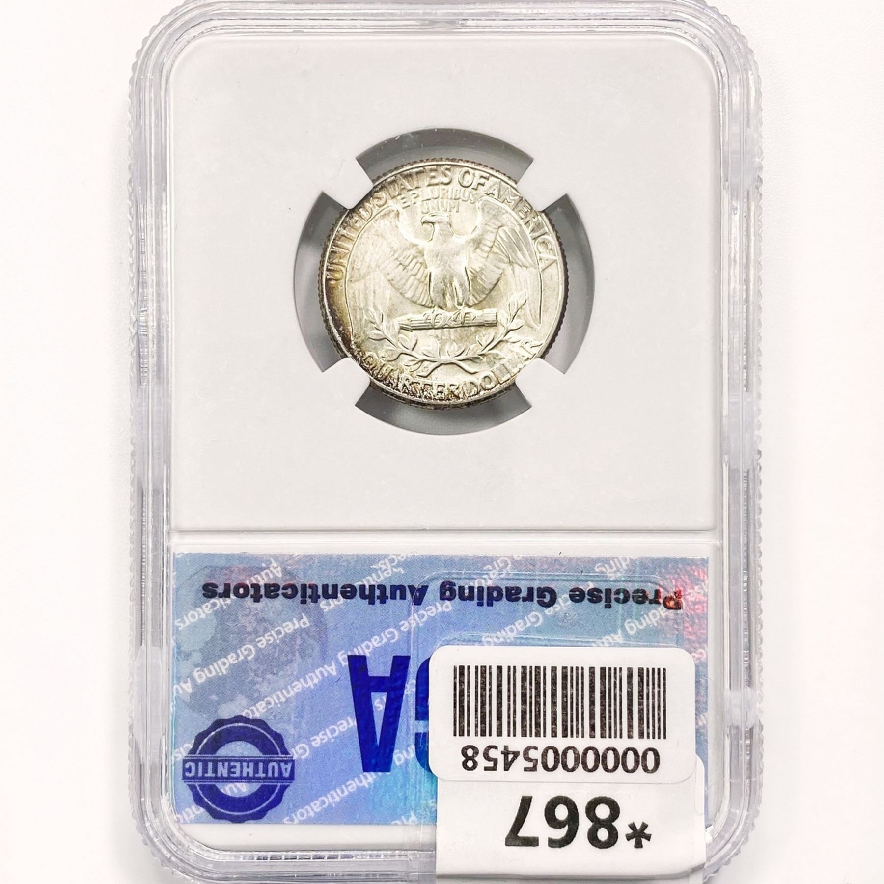 COINS AND CURRENCY LISTED IN GSA’S CATALOG AS GRADED AND ENCAPSULATED BY PCGS, NGC, ANACS, ICG, PCGS CURRENCY, PMG, PCGS BANKNOTE GRADING, CMC OR ANY OTHER THIRD-PARTY GRADING SERVICE ARE LIKEWISE SOLD “AS-IS” EXCEPT AS EXPRESSLY SET FORTH HEREIN. ALL THIRD-PARTY GRADING SERVICE GUARANTEES, INCLUDING AUTHENTICITY, ARE THE SOLE RESPONSIBILITY OF THE THIRD-PARTY GRADING SERVICE AND NOT WARRANTIES OR GUARANTEES OF GSA. BIDDERS SHOULD CONTACT THESE THIRD-PARTY GRADING SERVICES DIRECTLY WITH RESPECT TO ANY CLAIMS OR QUESTIONS THEY MAY HAVE CONCERNING THEIR GUARANTEES AND WARRANTIES. BIDDERS ACKNOWLEDGE AND AGREE THAT AUCTIONEER IS NOT BOUND BY OR LIABLE FOR ANY OPINION OR CERTIFICATION BY ANY THIRD-PARTY GRADING SERVICE. REMOVAL OF A PRODUCT FROM ITS PROTECTIVE CASING OR HOLDER OR ALTERATION OF ANY COIN HOLDER WAIVES ALL RIGHTS CONCERNING THE PRODUCT CONTAINED THEREIN.