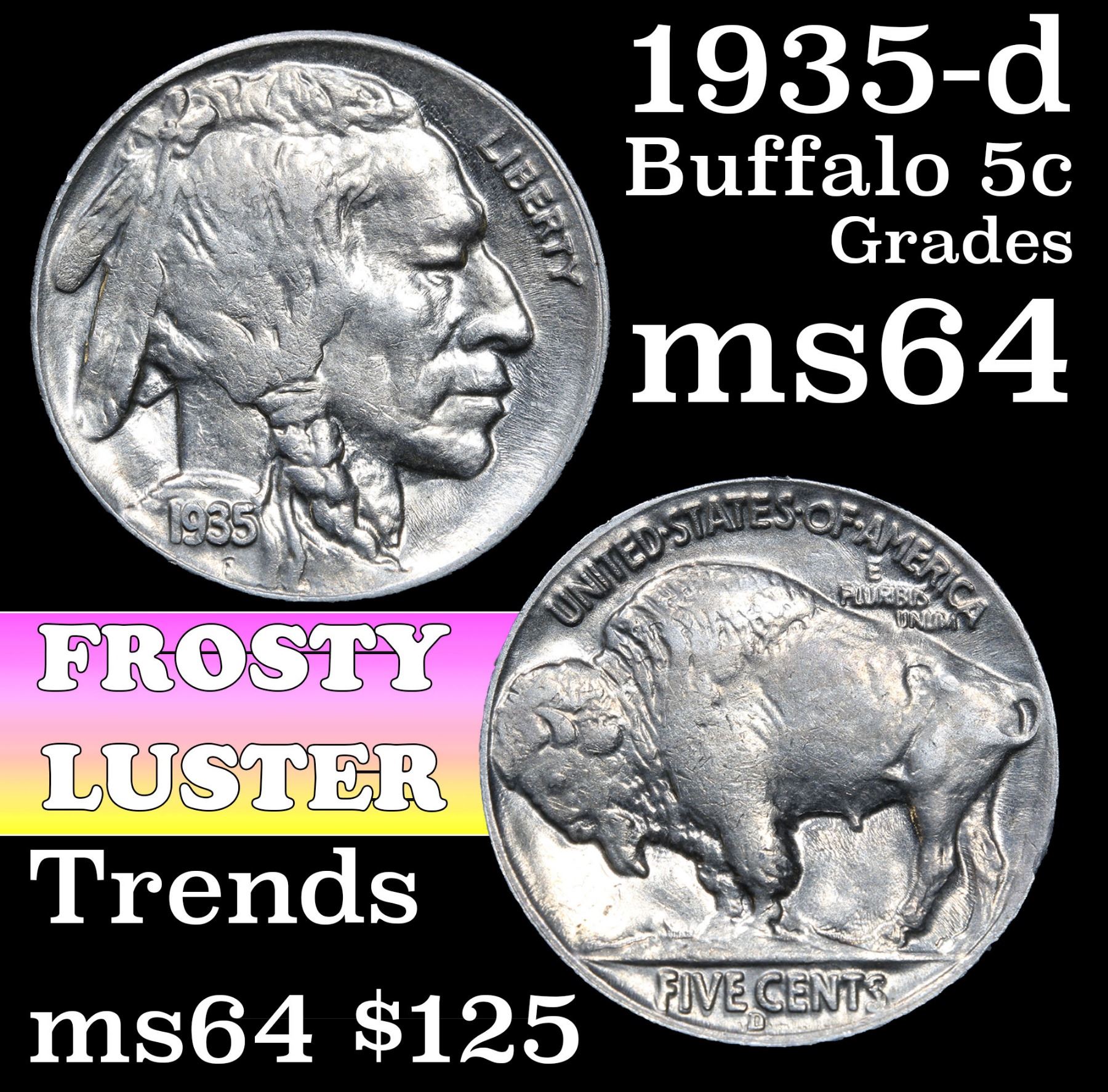1935-d Buffalo Nickel 5c Grades Choice Unc.