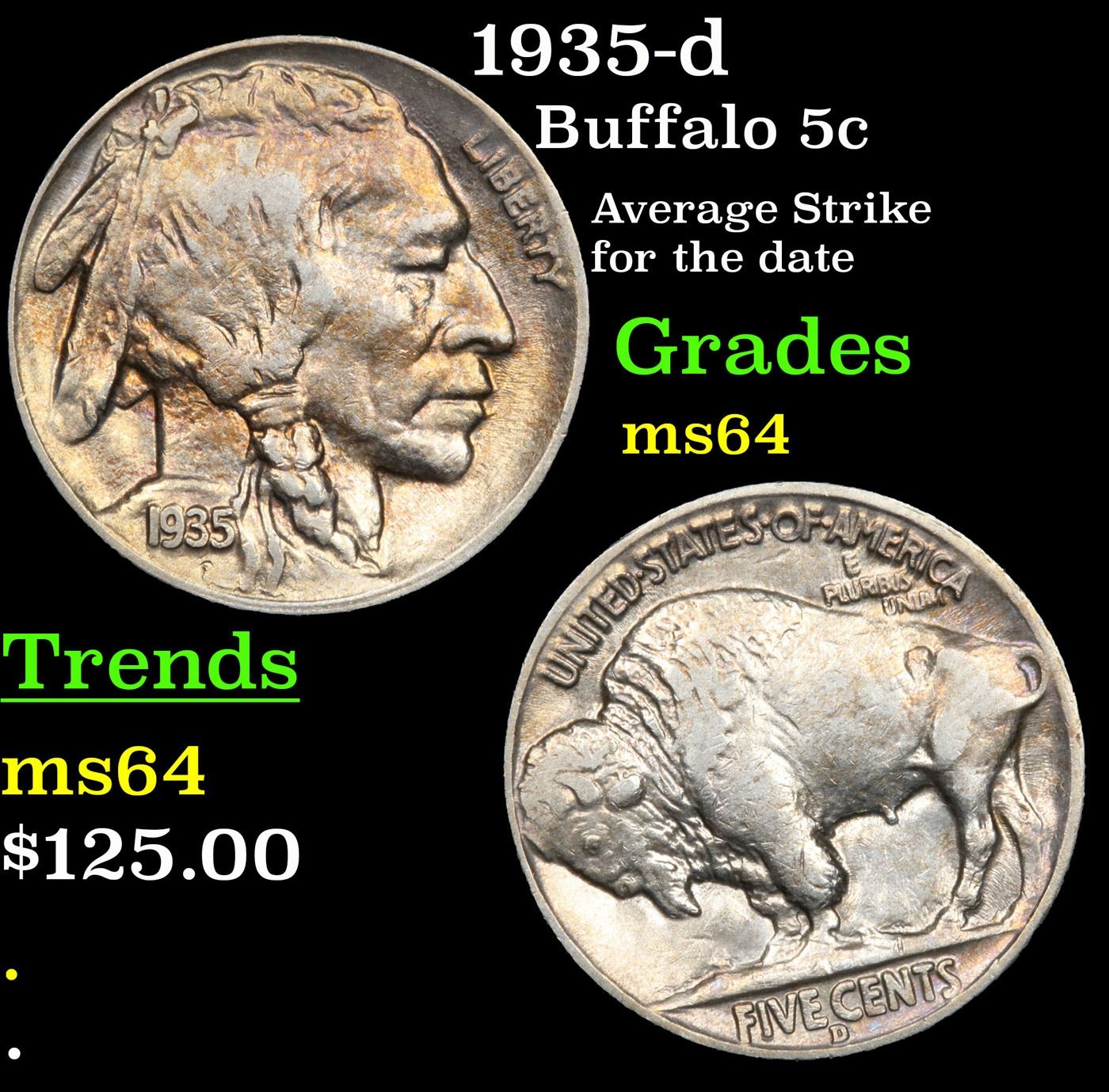 1935-d Buffalo Nickel 5c Grades Choice Unc.