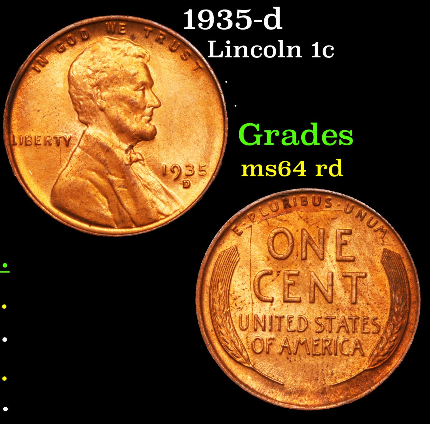1935-d Lincoln Cent 1c Grades Choice Unc RD.