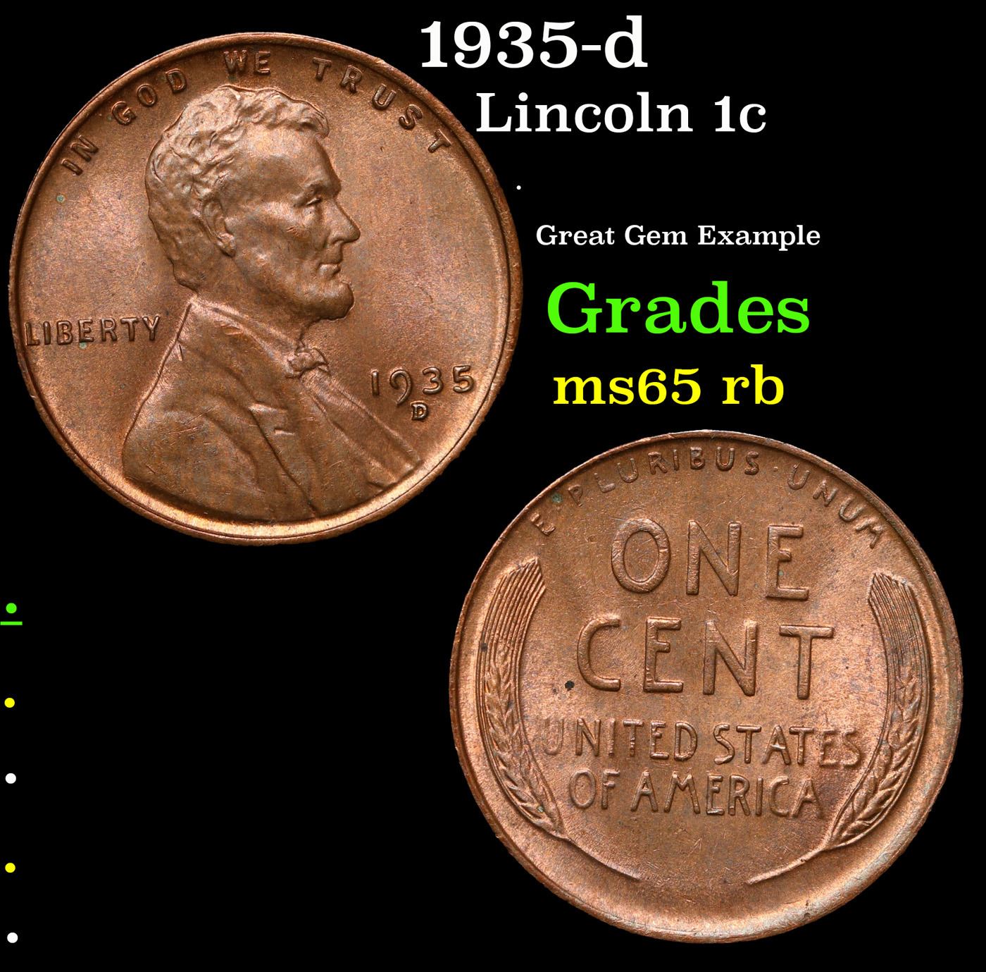 1935-d Lincoln Cent 1c Grades GEM Unc RB.