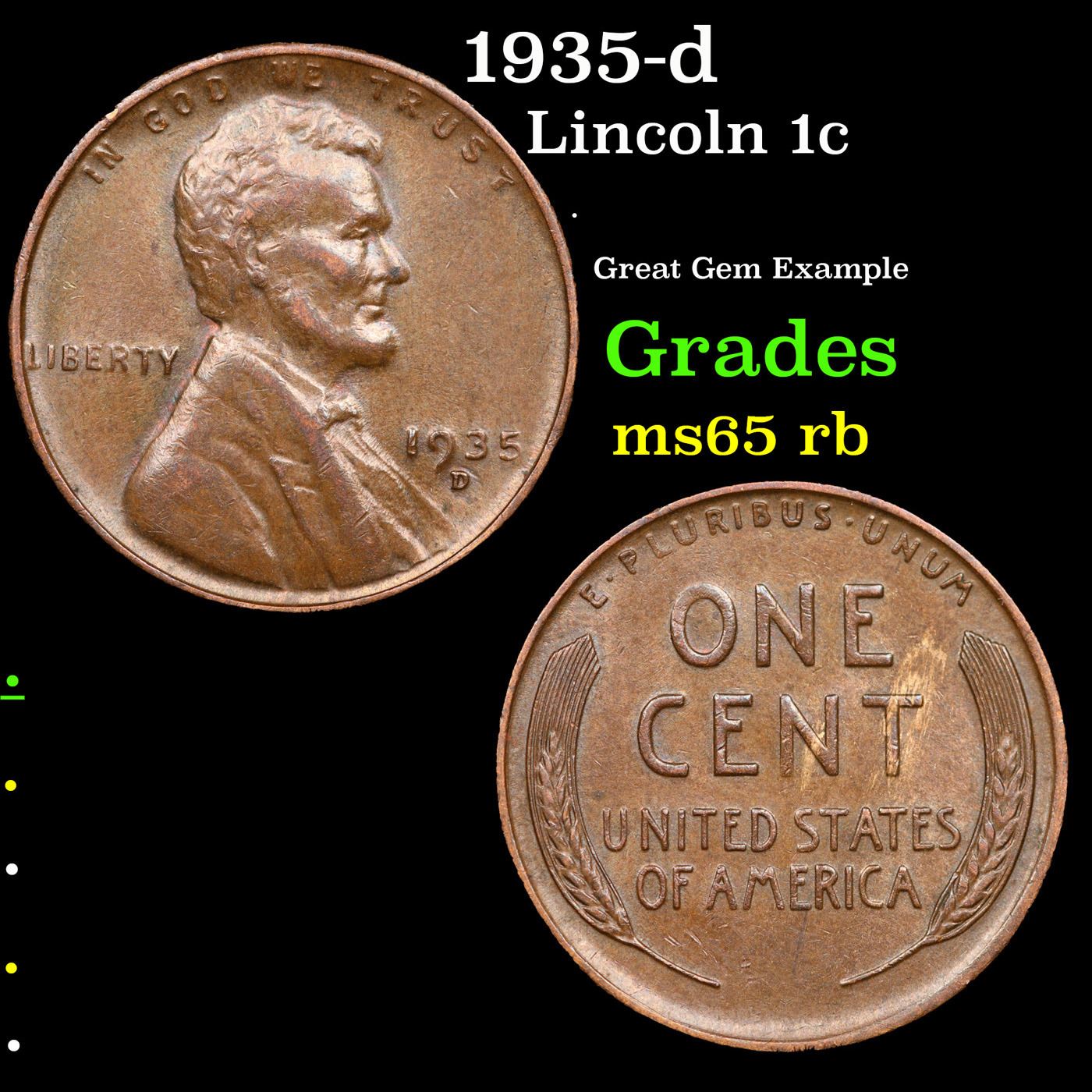 1935-d Lincoln Cent 1c Grades GEM Unc RB.