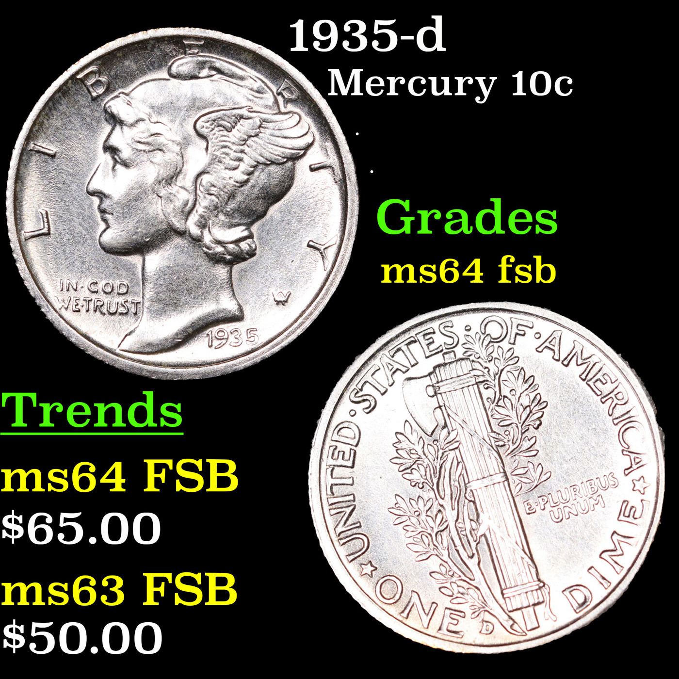 1935-d Mercury Dime 10c Grades Choice Unc FSB