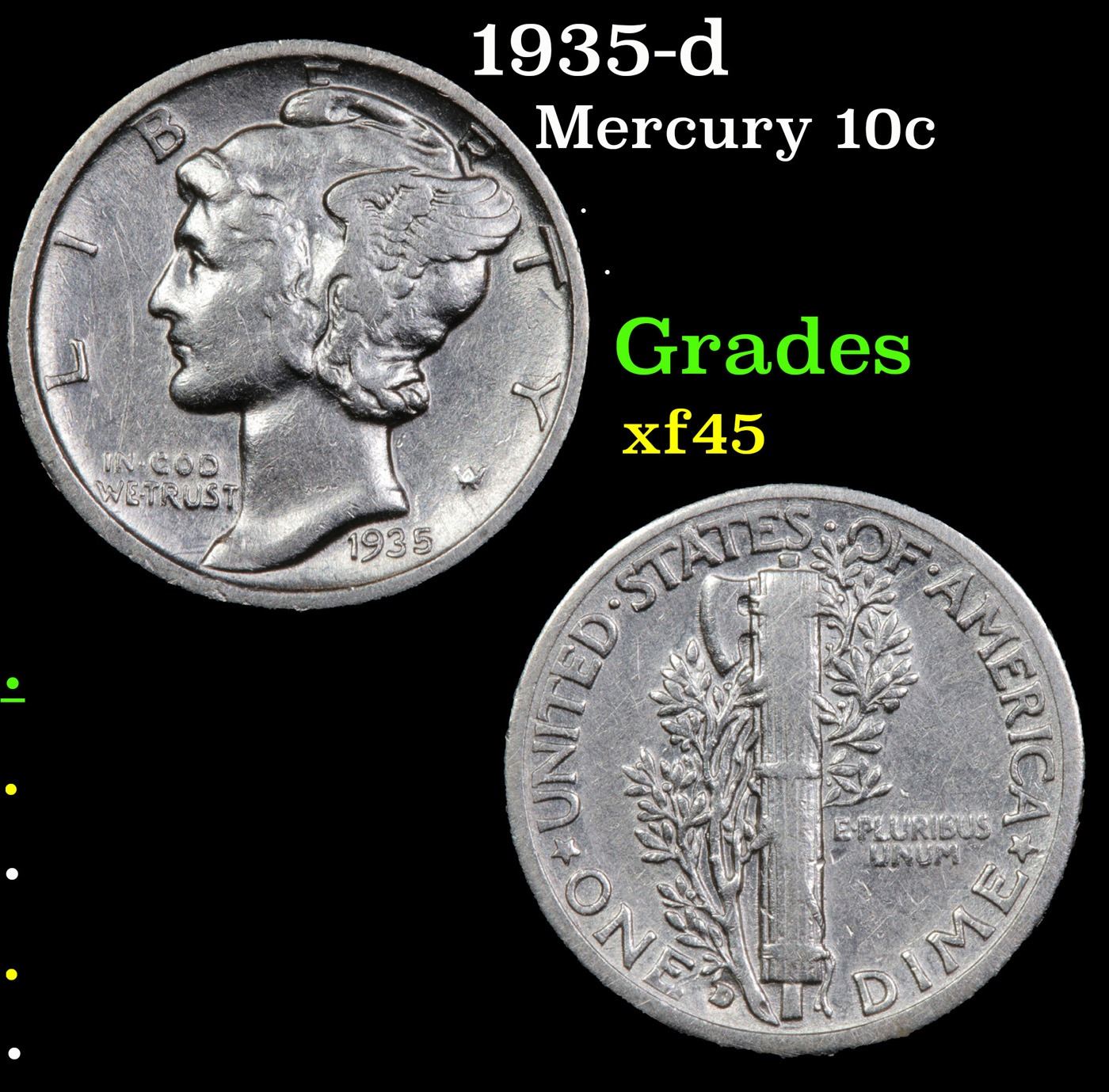 1935-d Mercury Dime 10c Grades xf+.
