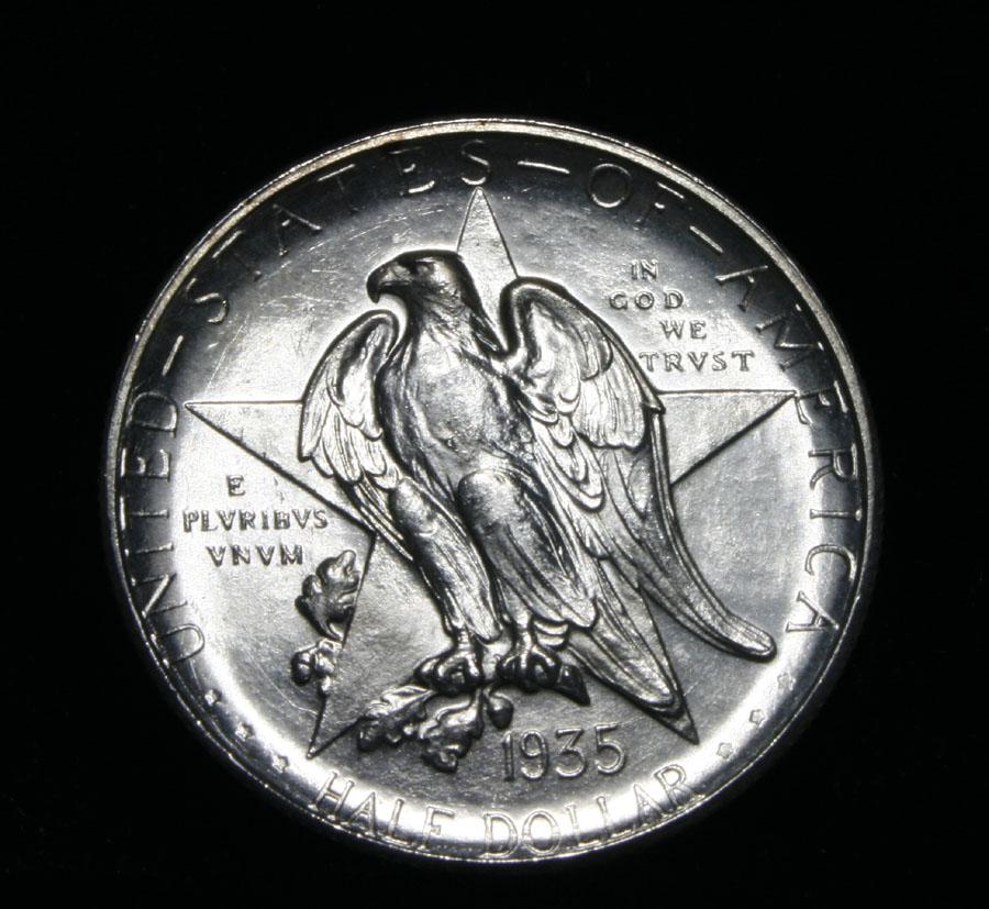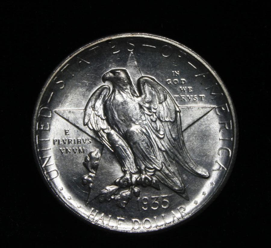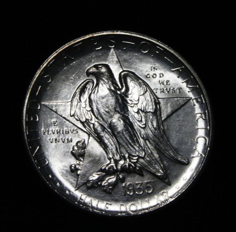 A stunning example with bright strong luster, and a great strike. When looking at a Texas Commemorative Look for the first signs of wear on the eagle’s knee and breast and on Victory’s eyebrow and knee. Coin World's Coin Values lists ms66 at $500 and The Wholesale Greysheet lists ms66 at $370 Estimated Value $400