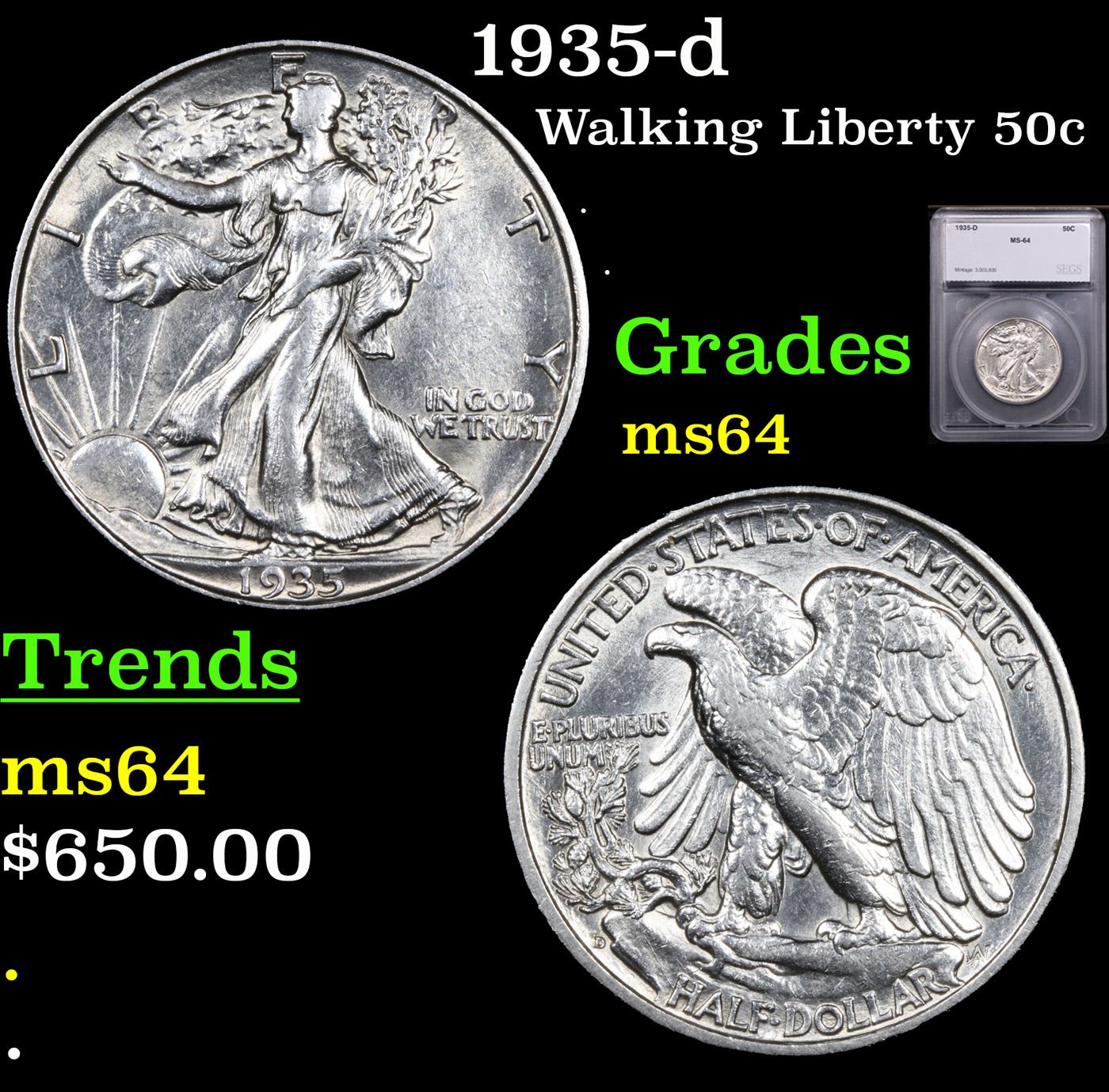 1935-d Walking Liberty Half Dollar 50c Graded ms64 By SEGS.
