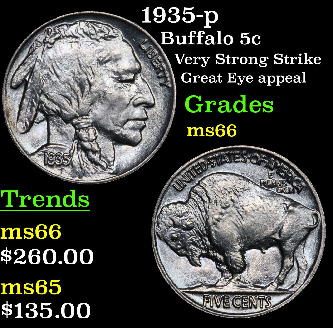 1935-p Buffalo Nickel 5c Grades GEM+ Unc.