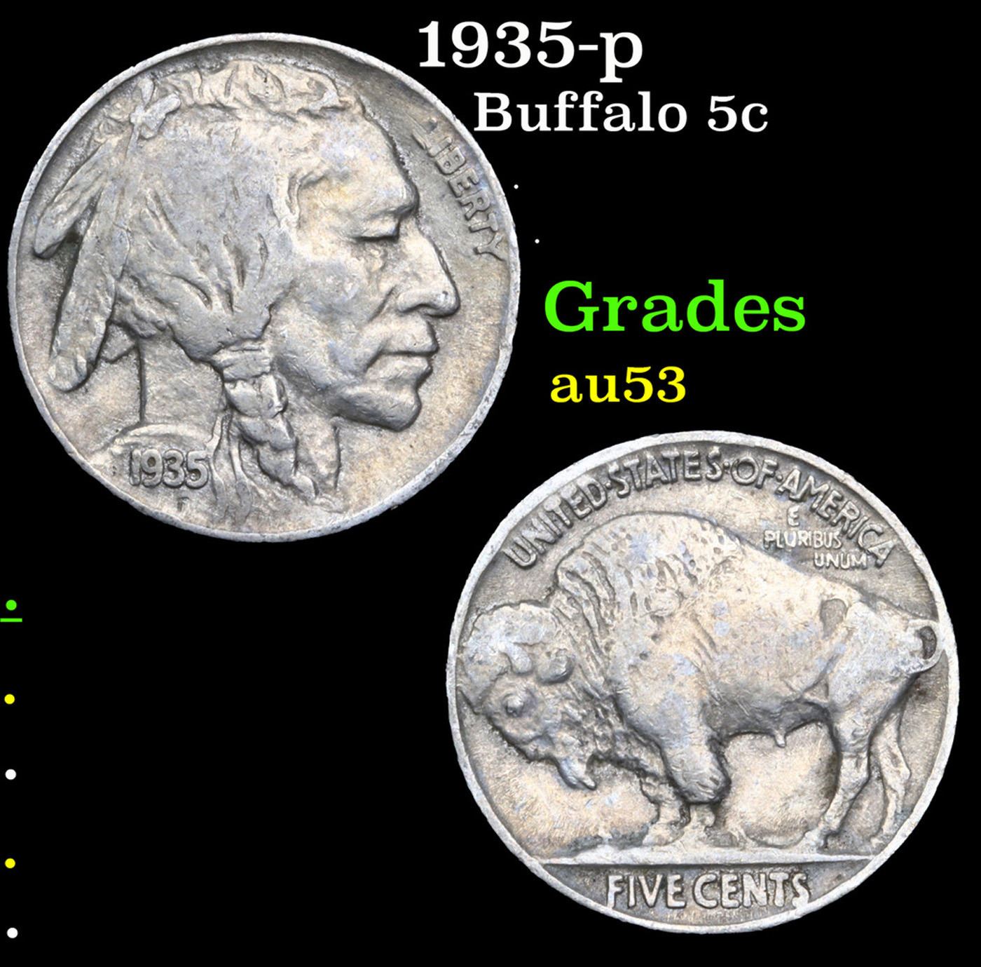 1935-p Buffalo Nickel 5c Grades Select AU.