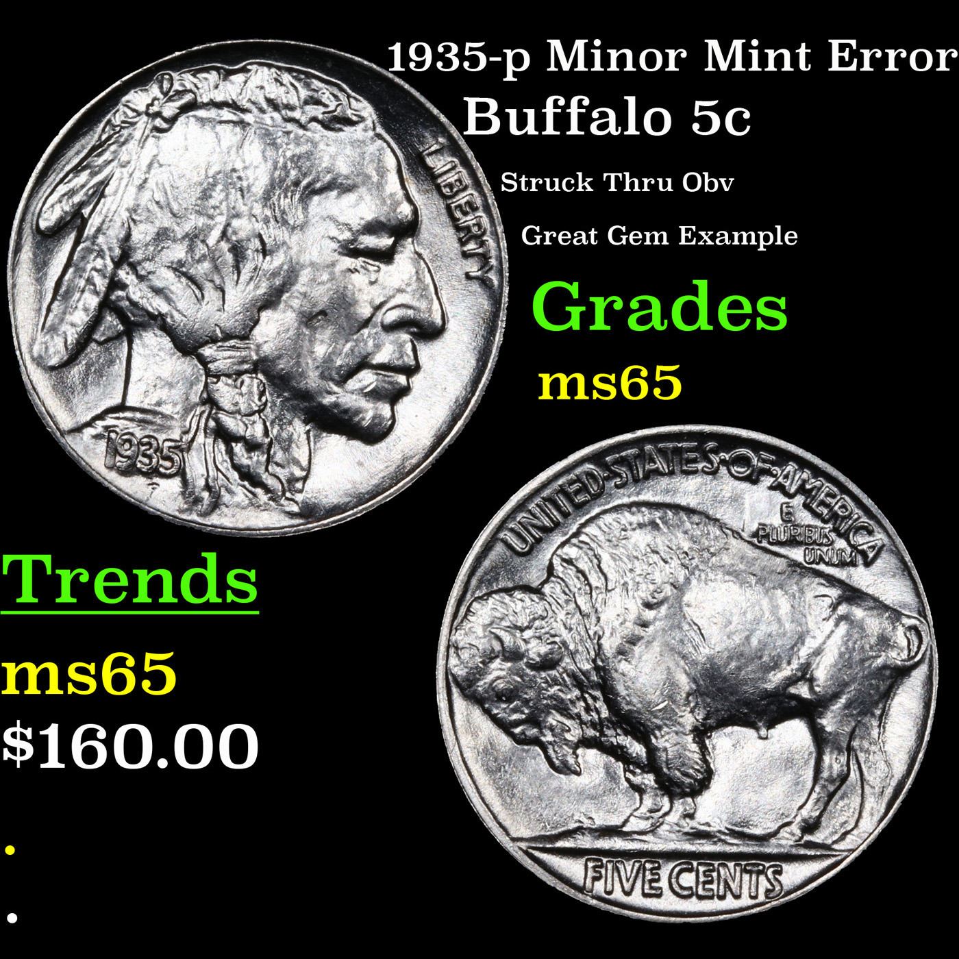 1935-p Minor Mint Error Buffalo Nickel 5c Grades GEM Unc.