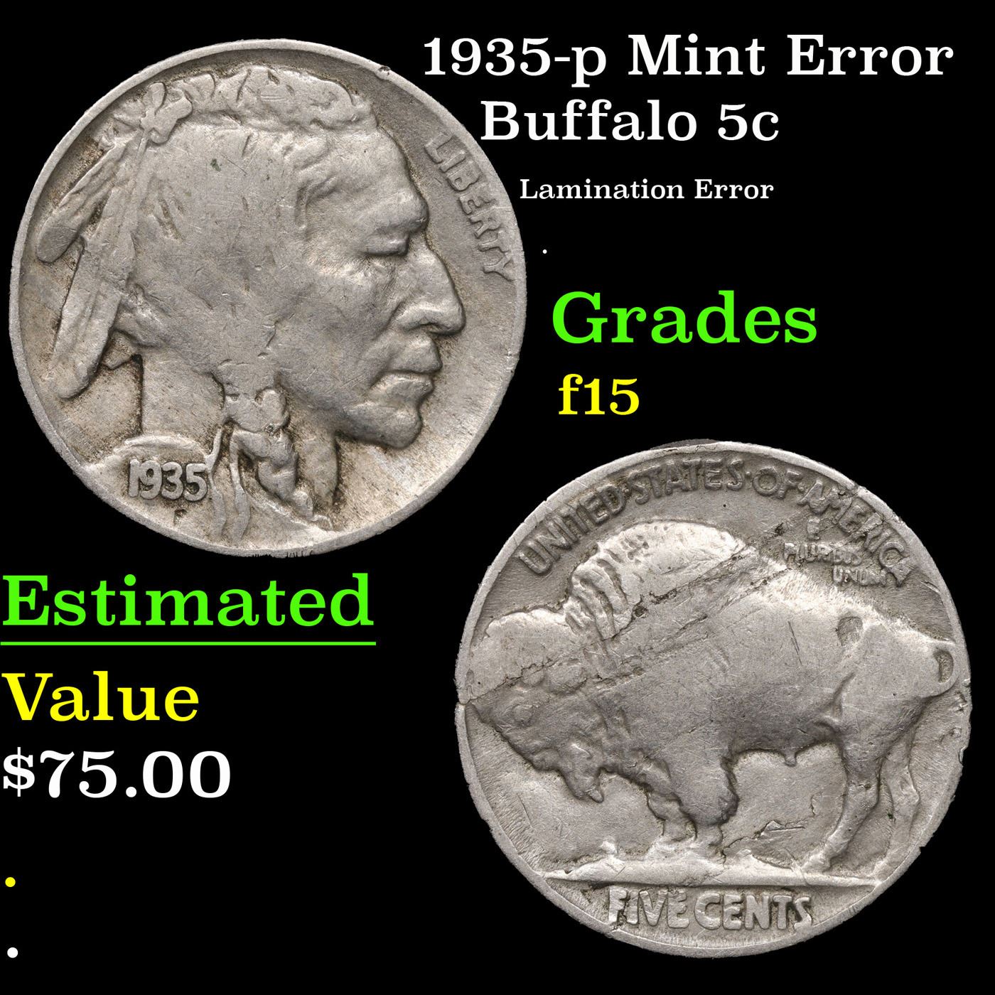 1935-p Mint Error Buffalo Nickel 5c Grades f+.