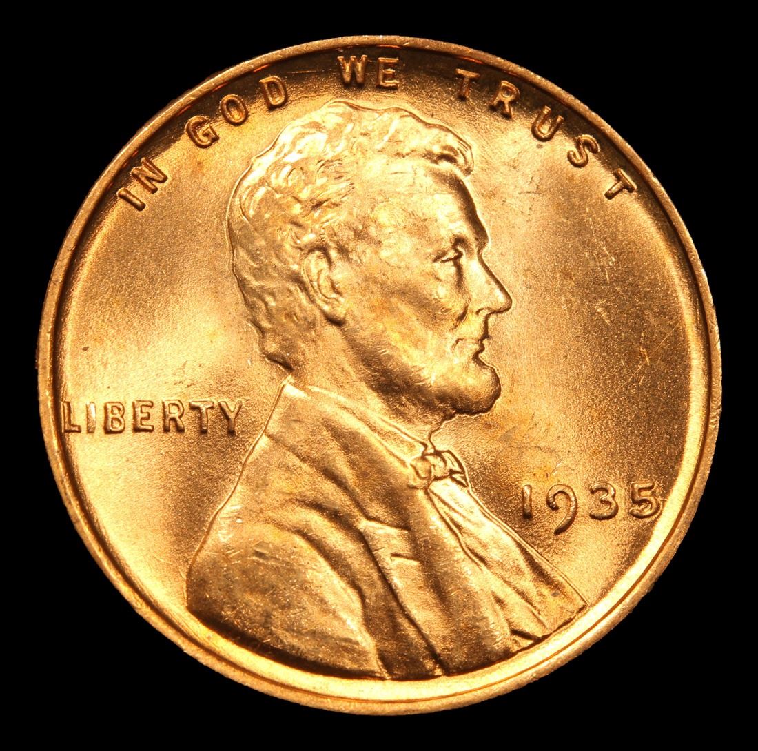 1935-p . Cool Clash On Reverse Lincoln Cent 1c Grades GEM++ RD.