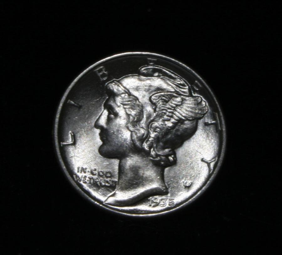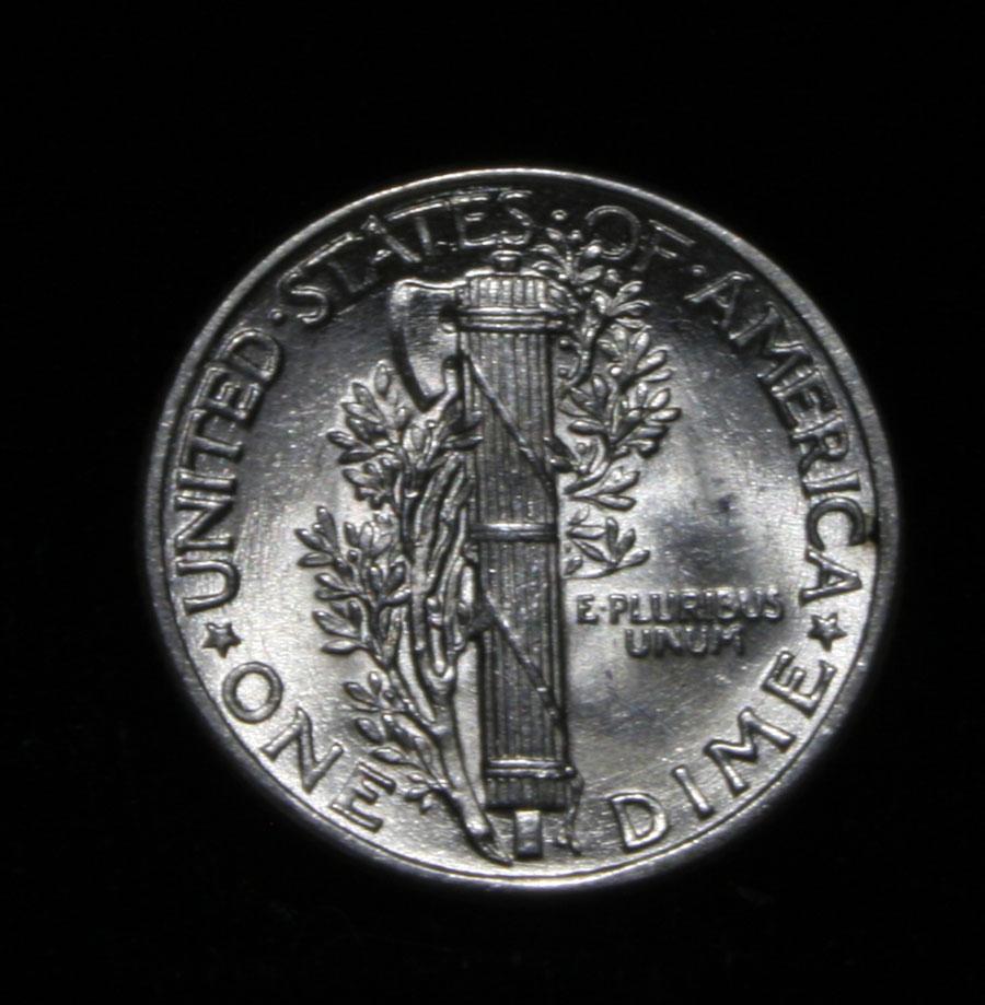 A Great Full Split Band Mercury. Great Luster, Great Strike. I received about 10 stunning Mercurys from one consignee each is more beautiful than the next. This is one of the 10, all 10 are up today. Coin World's Coin Values lists ms65 FSB as $75 and The Wholesale Greysheet lists ms65 FSB at $52. Estimated Value $60.