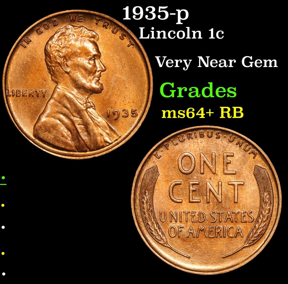 1935-p . Very Near Gem Lincoln Cent 1c Grades Choice+ Unc RB.