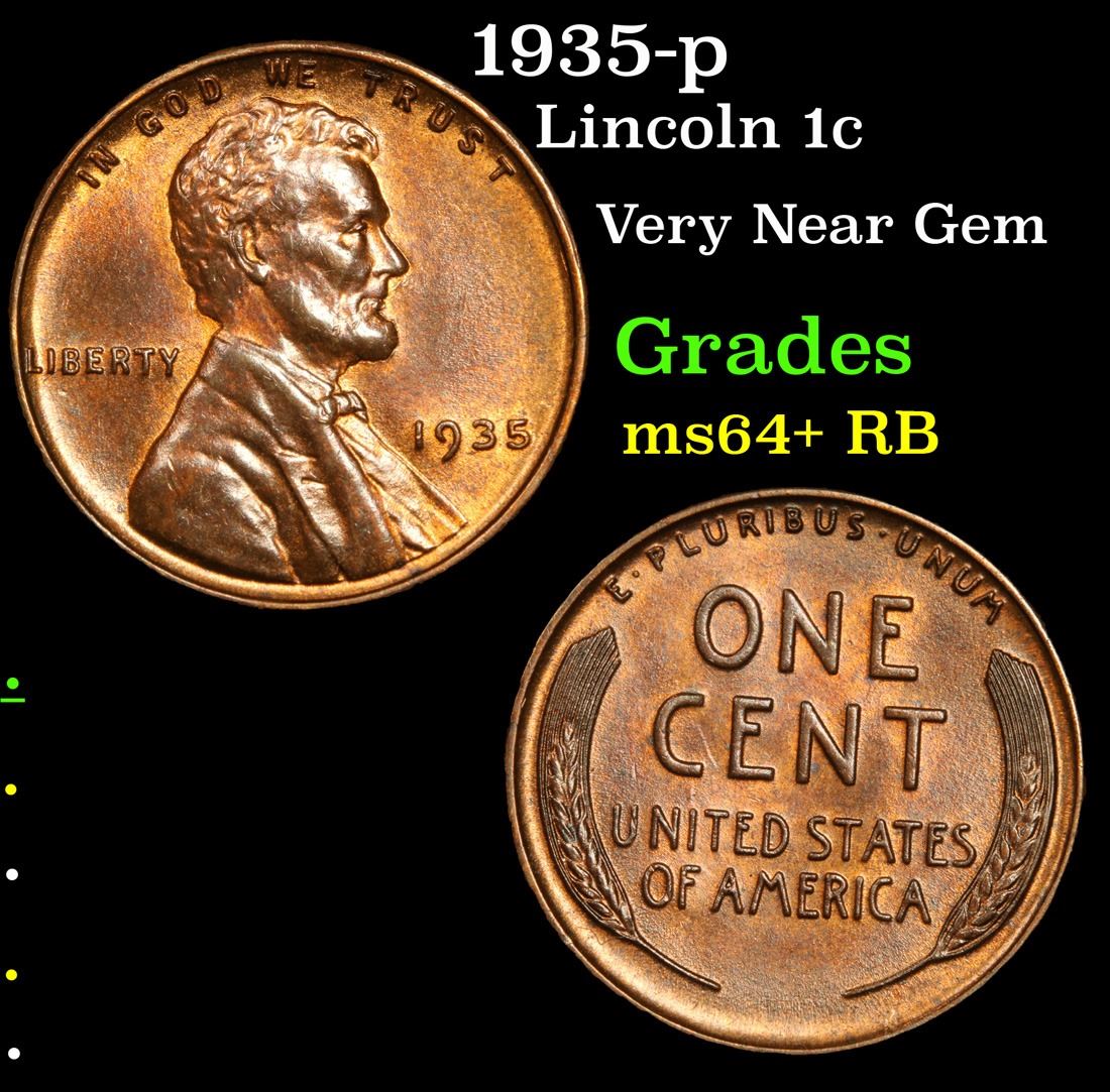 1935-p . Very Near Gem Lincoln Cent 1c Grades Choice+ Unc RB.