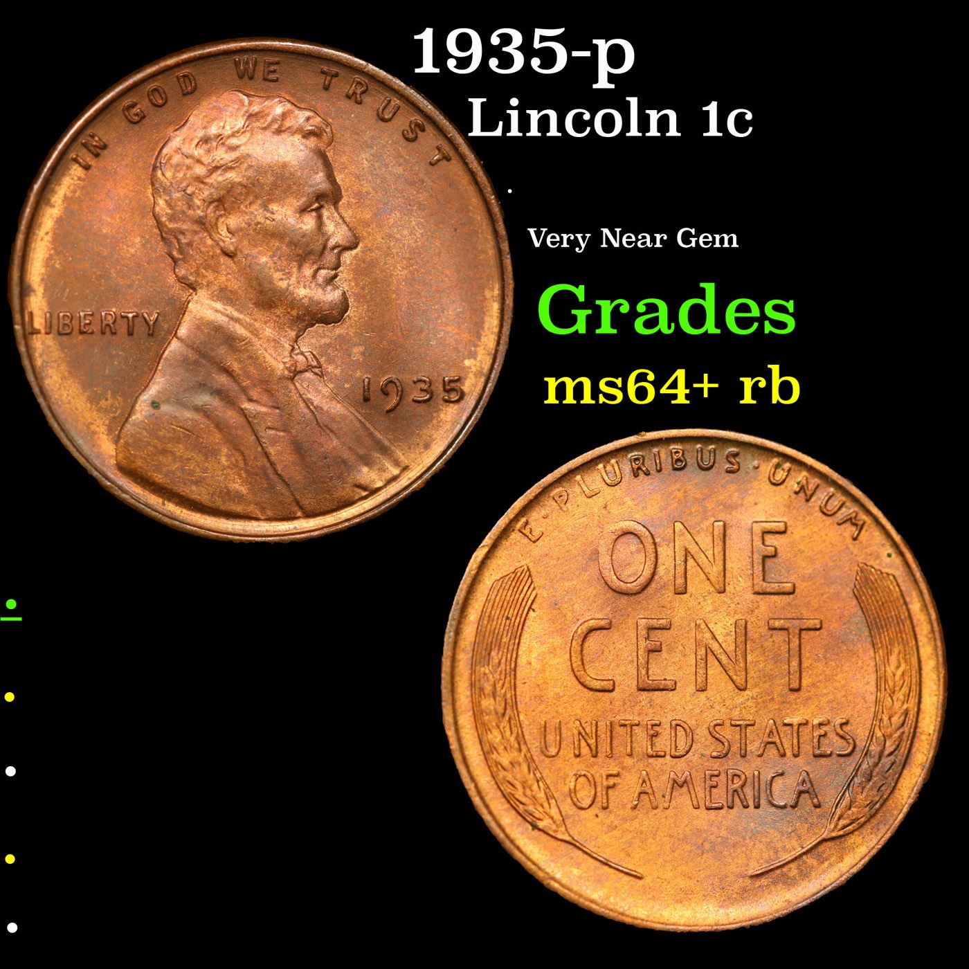 1935-p Lincoln Cent 1c Grades Choice+ Unc RB.
