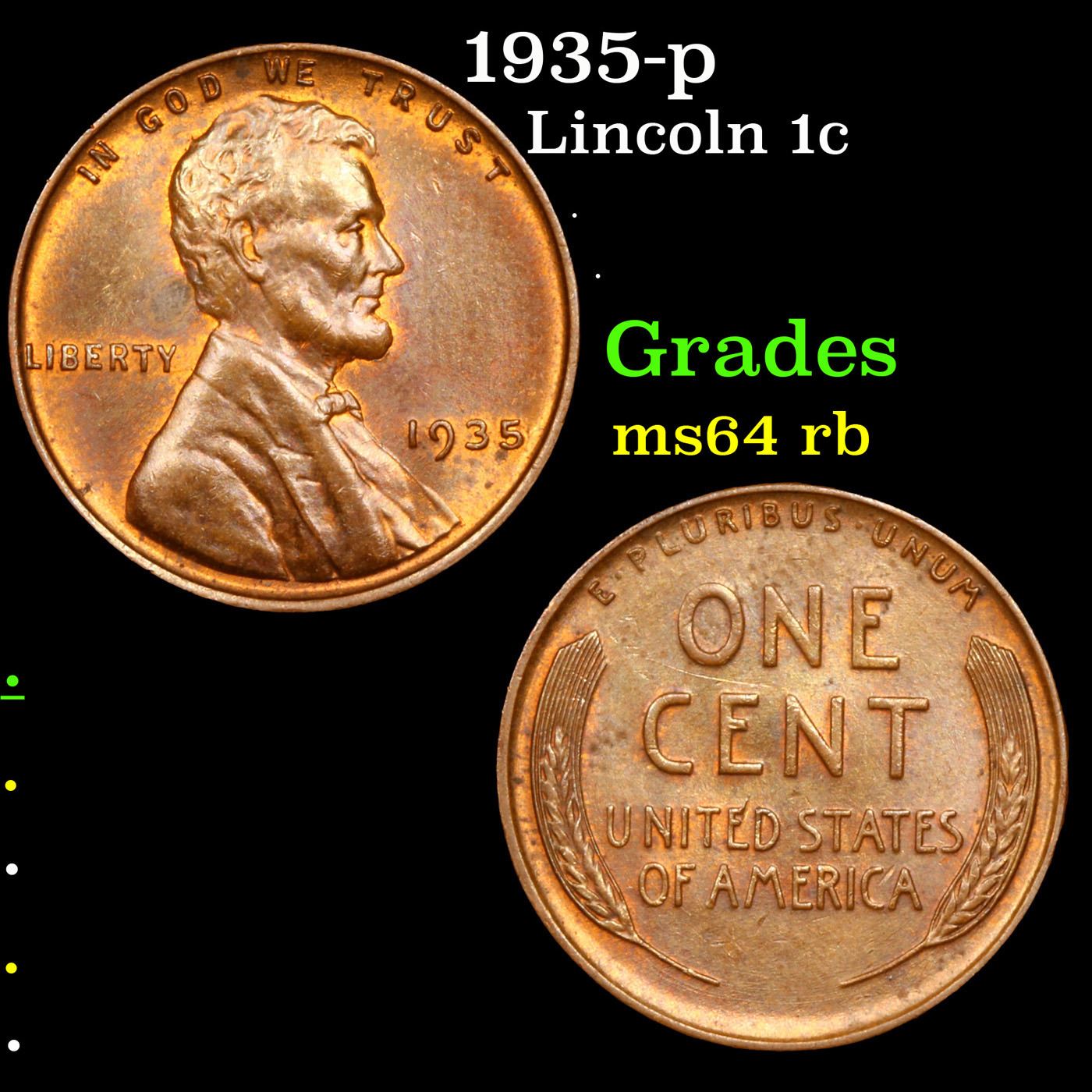 1935-p Lincoln Cent 1c Grades Choice Unc RB.