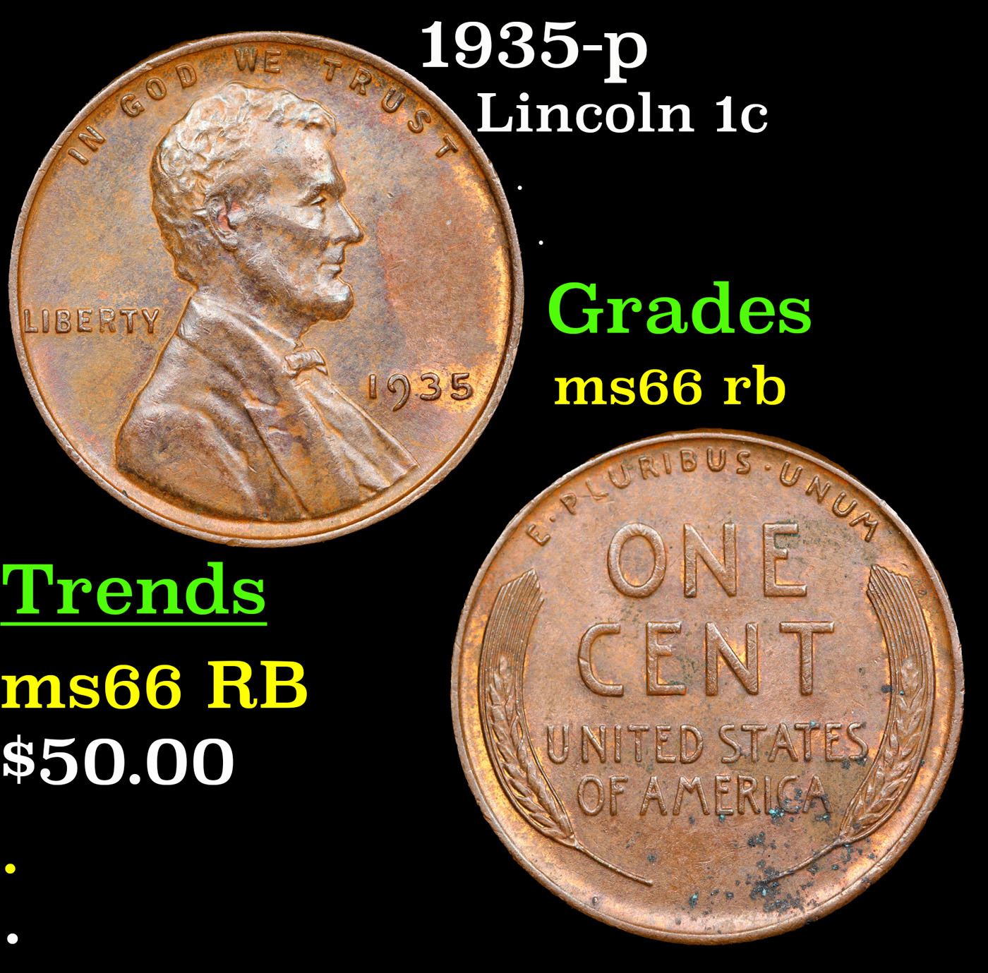 1935-p Lincoln Cent 1c Grades GEM+ Unc RB.
