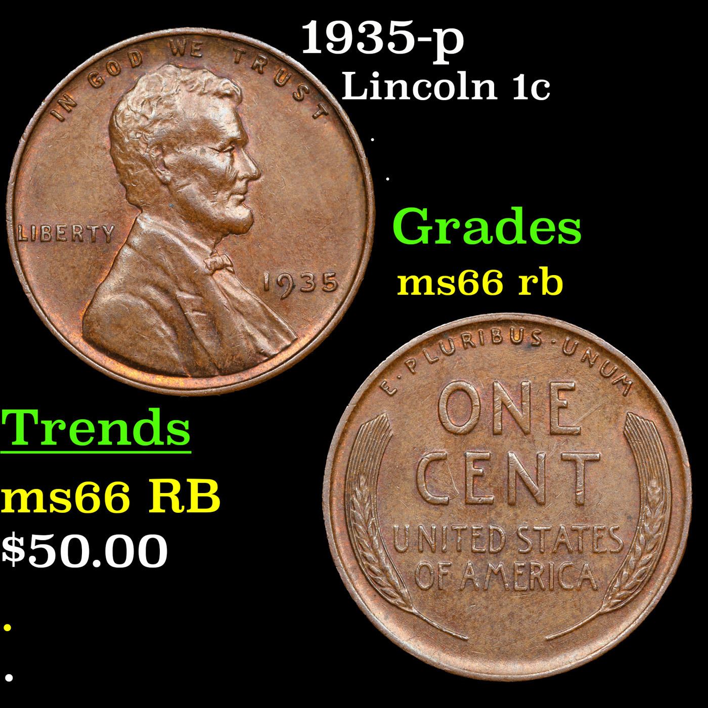1935-p Lincoln Cent 1c Grades GEM+ Unc RB.