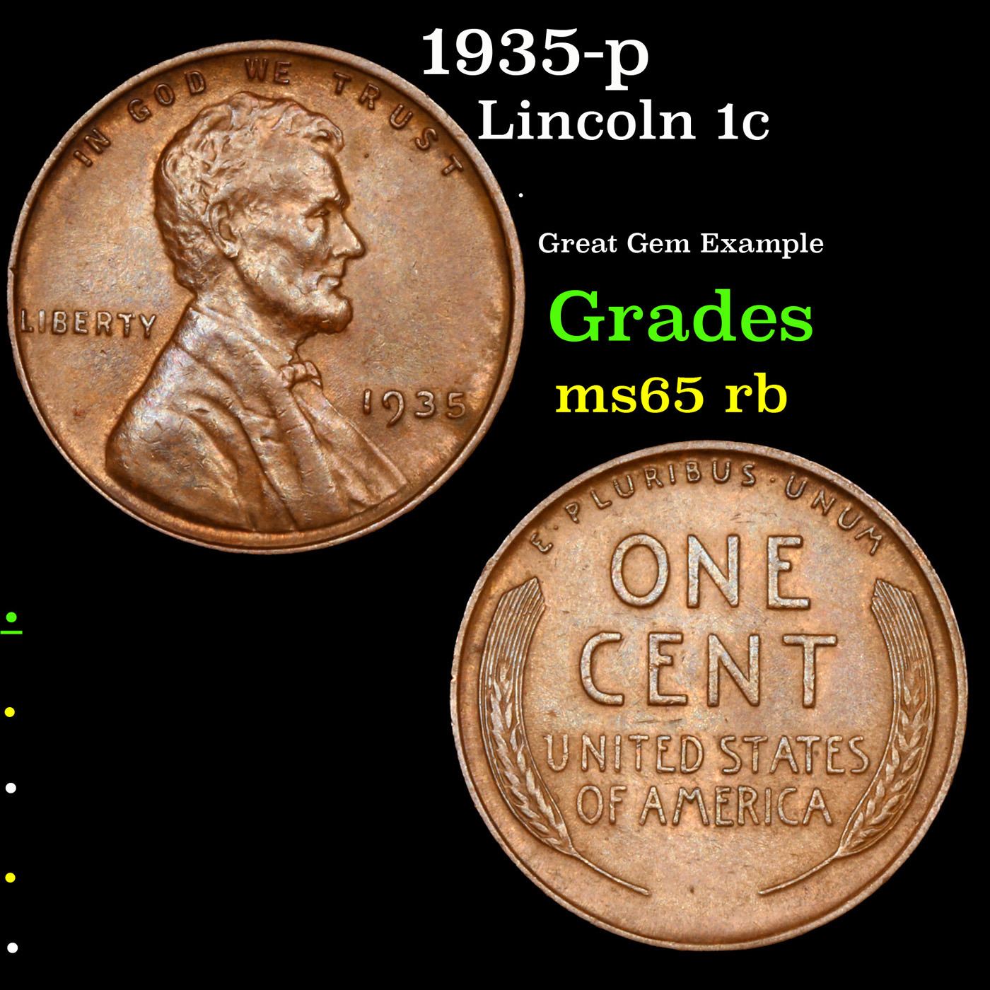 1935-p Lincoln Cent 1c Grades GEM Unc RB.