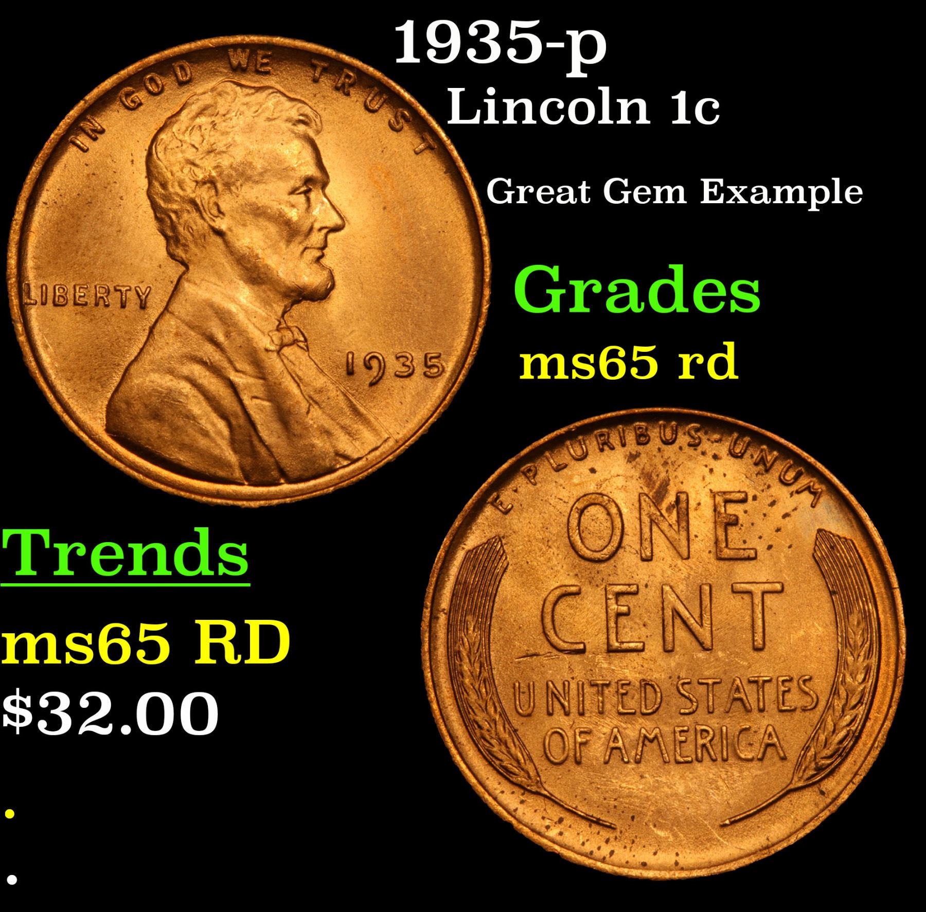 1935-p Lincoln Cent 1c Grades GEM Unc RD.